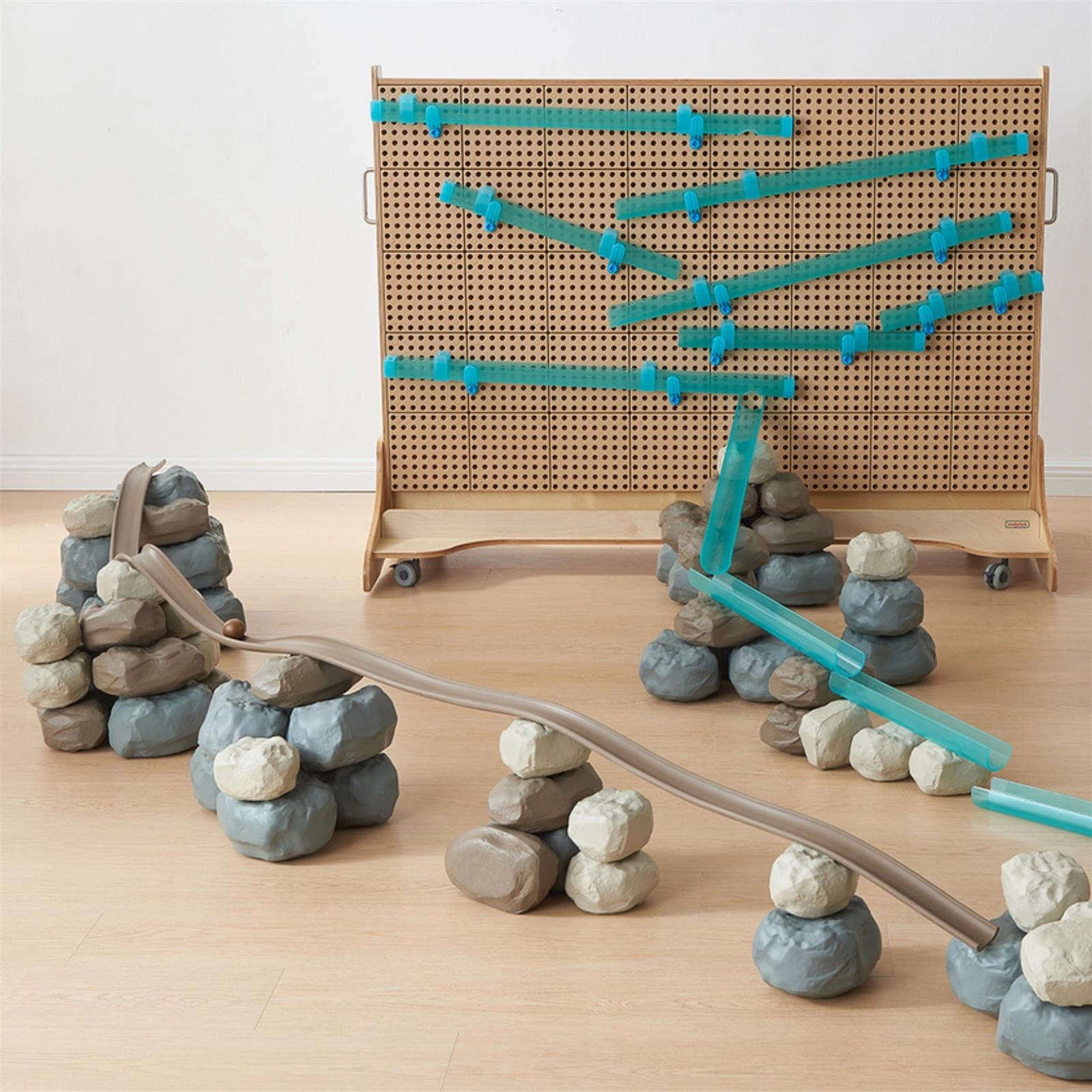 Elastyczny Tor Kulkowy to lekkie, bezpieczne elementy konstrukcyjne wykonane z elastycznego tworzywa sztucznego. Zostały zaprojektowane z myślą o kreatywnej zabawie, umożliwiając budowanie podpór, przeszkód i różnorodnych struktur do torów wyścigowych i eksperymentów z grawitacją. Kamienie można dowolnie układać, tworząc unikalne tory lub konstrukcje wspierające elastyczny tor. Idealnie sprawdzą się jako narzędzie do zabawy w pojedynkę lub w grupie, zachęcając do współpracy i kreatywności.