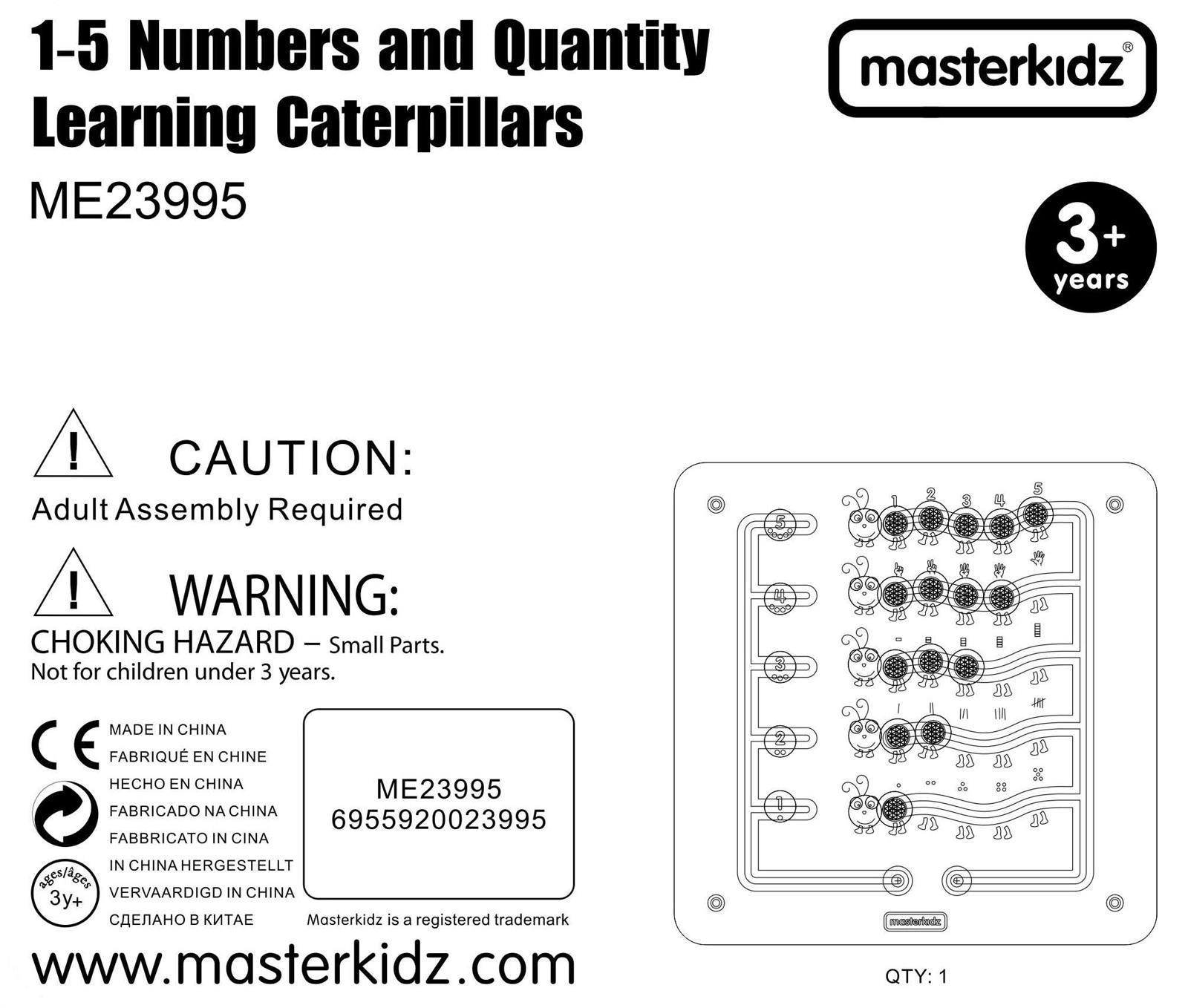MASTERKIDZ Kolorowe Gąsieniczki Nauka Liczb i Ilości - Tablica Ścienna Edukacyjna Montessori