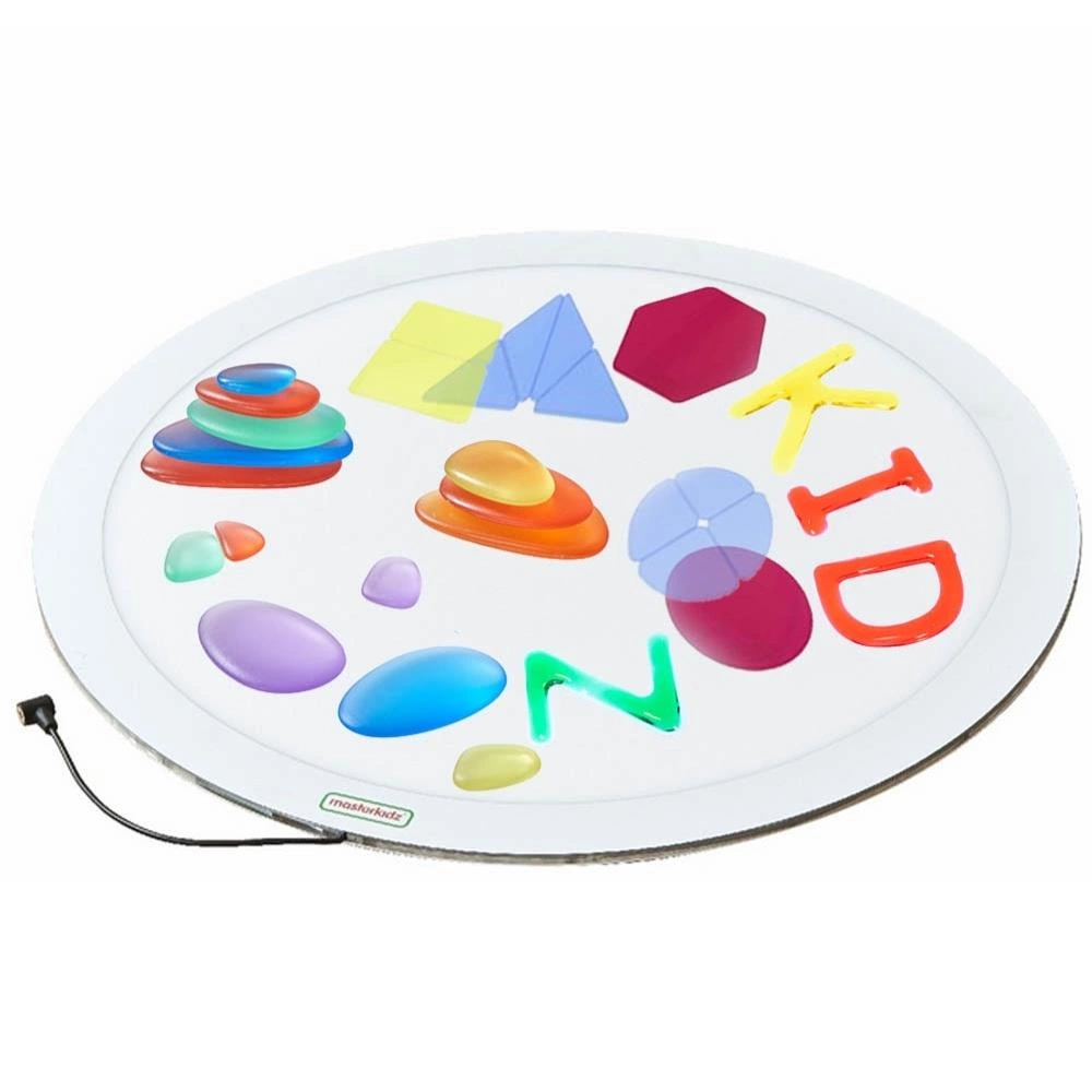 Okrągły panel świetlny to wszechstronne narzędzie edukacyjne, które doskonale sprawdzi się w każdej sali lekcyjnej. Dzięki lekkiej konstrukcji i dużej średnicy umożliwia wygodne przenoszenie oraz zapewnia odpowiednią przestrzeń do obserwacji i zabawy dla dzieci w różnym wieku. Panel emituje kolorowe światło z możliwością dowolnej konfiguracji dzięki dołączonemu pilotowi, użytkownik może ustawić panel na jeden z 11 zaprogramowanych kolorów, lub ręcznie zmienić emitowany kolor bazując na podstawowych barwach światła: czerwonej, zielonej i niebieskiej. Urządzenie pozwala także na płynne przechodzenie pomiędzy kolorami oraz zapamiętywanie wybranych barw do ponownego użycia Panel można umieścić zarówno na stole, jak i na podłodze – jego rozmiar pozwala na jednoczesną pracę jednego dziecka lub grupy. Panel doskonale współpracuje z dołączonymi do zestawu kolorowymi akcesoriami które wzbogacają możliwości zabawy i nauki, umożliwiając tworzenie różnorodnych wzorów i kompozycji w świetle.