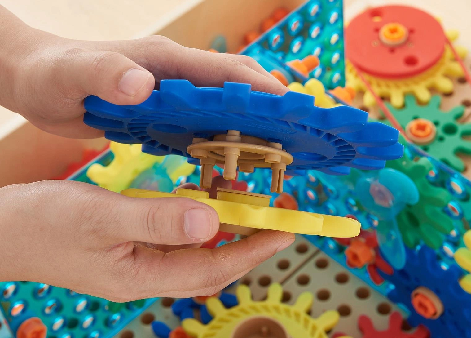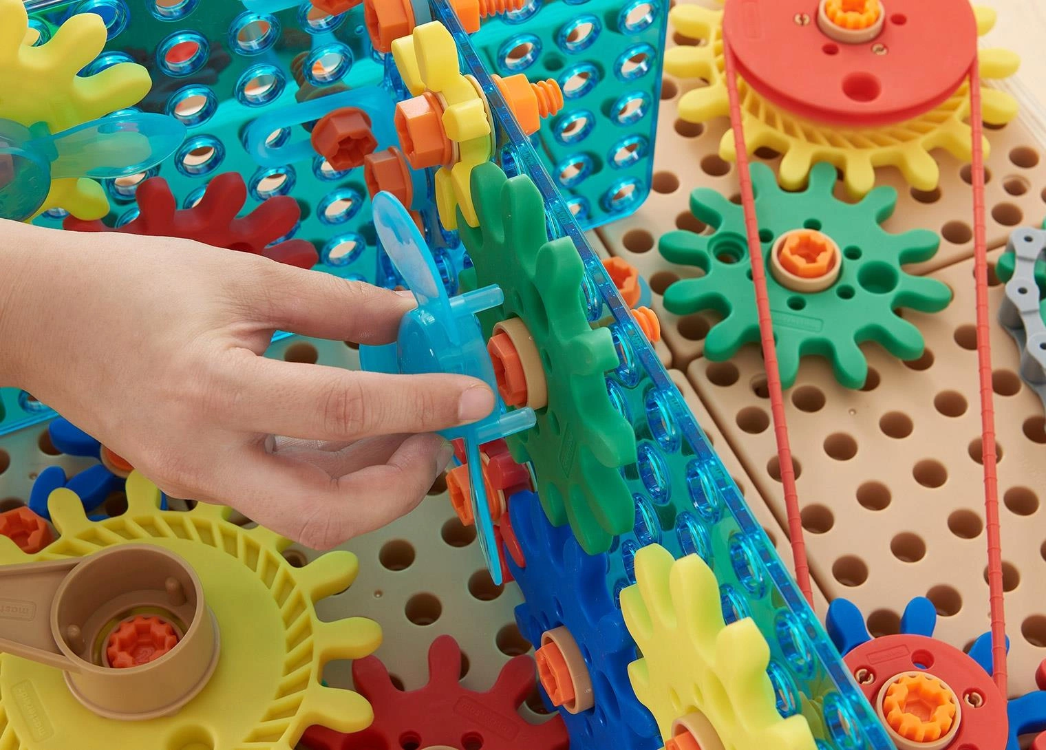 Zestaw kolorowych trybików i kół zębatych, które pozwalają na skonstruowanie skomplikowanych mechanizmów. Zabawkę montuje się na Tablicy Naukowo-Kreatywnej Masterkidz STEM przy pomocy specjalnych śrub Masterkidz. Zabawa kołami zębatymi poprawia motorykę dziecka, zdolność logicznego myślenia, a także kreatywność.