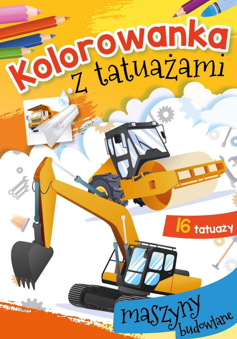 W środku: projekty do kolorowania i zestaw zmywalnych tatuaży (wzory kolorystyczne).