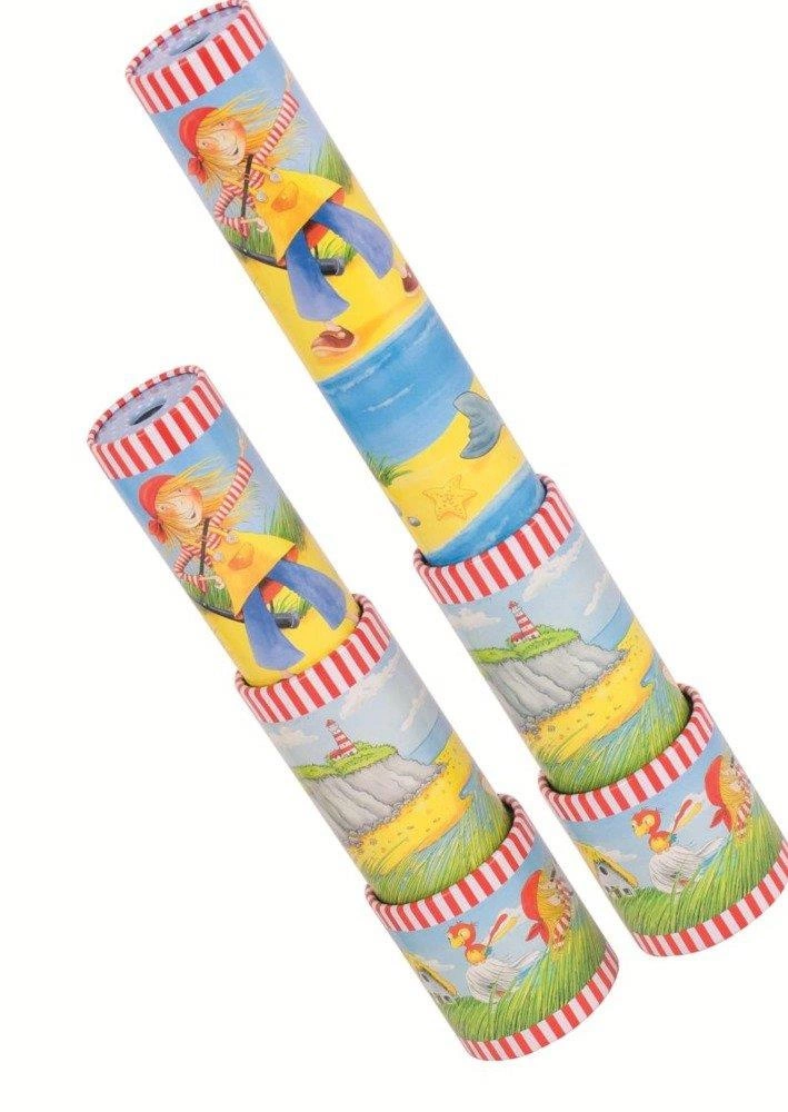 Luneta małego pirata Goki daje możliwość obserwowania otoczenia w zniekształcony sposób. Zabawka wykonana jest z metalu i składa się z trzech części. Jedna z nich jest wysuwana. Całą zabawkę charakteryzują wesołe kolory, który bez wątpienia przyciągają uwagę. Świetnie sprawdzą się w codziennej zabawie Twojego dziecka. Luneta sprawdzi się zarówno dla dziewczynek jak i dla chłopców. Będzie również fajnym pomysłem na prezent.