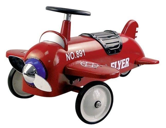 W krainie marzeń, gdzie radość płynie niczym rzeka, czeka Metalowy jeździk retro trójkołowy samolot Goki, gotowy na podbój przestworzy z Twoim dzieckiem!