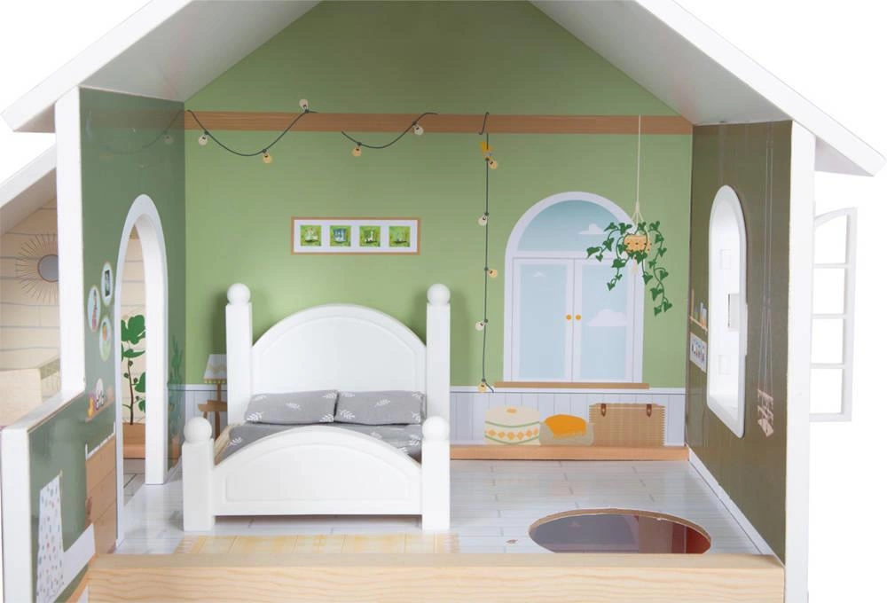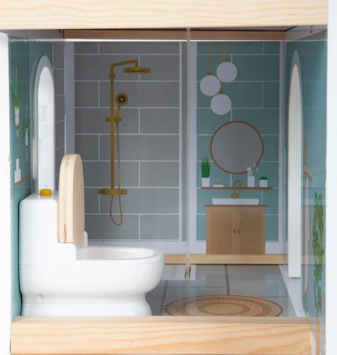 Miejska Willa Small Foot to drewniany domek dla lalek, który zachwyci każdego. Składa się z dwóch pięter połączonych ze sobą nowoczesnymi, krętymi schodami, trzech pokoi, balkonu i ogródka. W domku znajdują się wykonane z materiałów wysokiej jakości mebelki z elementami drewna. Delikatna, pastelowa kolorystyka sprawia, że willa pasuje do każdego wnętrza. Otwarty przód konstrukcji zapewnia łatwy dostęp do wszystkich elementów. W domku mogą zamieszkać laleczki mierzące 12 cm. Zabawa w domku dla lalek Small Foot to wspaniała okazja, aby rozwijać wyobraźnię i kreatywność najmłodszych, a także nauka wcielania się w rolę.