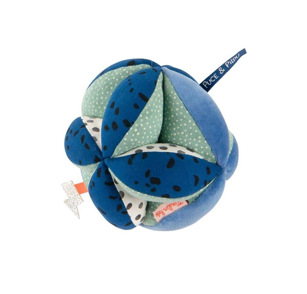 Niezwykła, pluszowa piłeczka sensoryczna z kolekcji Puce & Pilou. Dzieci mogą włożyć małe paluszki do środka piłki, chwytać ją i potrząsać, aby usłyszeć delikatny dźwięk dzwoneczka. Różne kolory i materiały zapewniają szereg doznań sensorycznych.