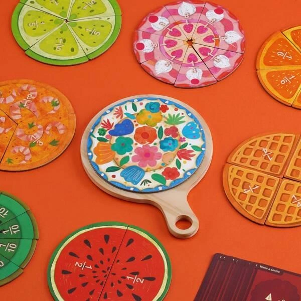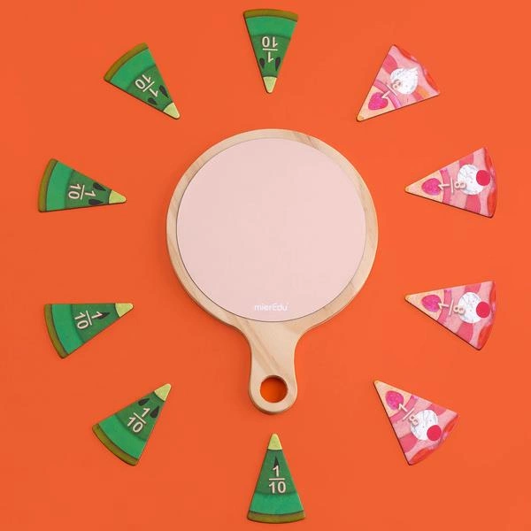 Układanka matematyczna do nauki ułamków - Yummy Food od mierEdu. Ta gra pozwala na naukę poprzez zabawę, w szczególności skupia się na edukacji matematycznej. Pomaga dzieciom zrozumieć koncepcję ułamków na przykładach popularnych potraw, które doskonale znają z życia codziennego, a także uczy podstawowego słownictwa w języku angielskim z zakresu ułamków. Ten zestaw sprawia, że nauka ułamków jest łatwa i intuicyjna, za jego pośrednictwem można zapoznać się z porównywaniem części do całości, zagadnień równorzędności, zrozumieć jak działają ułamki i jak wykonywać podstawowe działania z ich udziałem. Zestaw zawiera: drewnianą deskę magnetyczną, karty magnetyczne x 41, karty x15, plakat, przewodnik dla rodziców. Opakowanie i produkt wykonane są z materiałów eco-friendly. Poznaj pozostałe zestawy gier edukacyjnych od mieEdu.