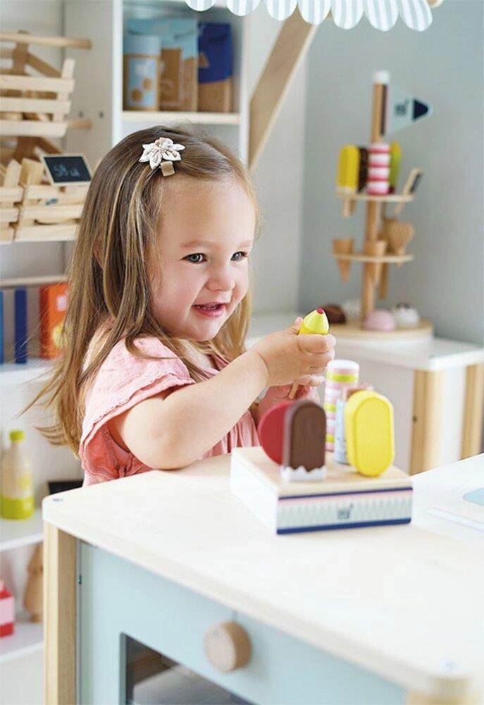 Kompletem lizaków lodowych od Small Foot można się bawić w domowej kawiarni, sklepie ze słodyczami lub zabawkowej kuchni.
