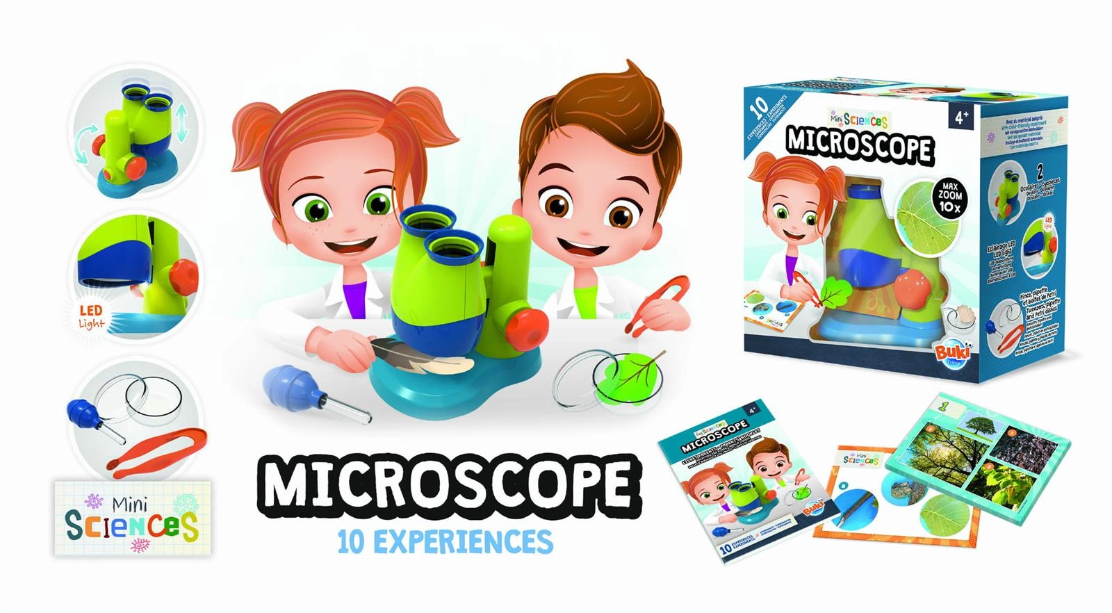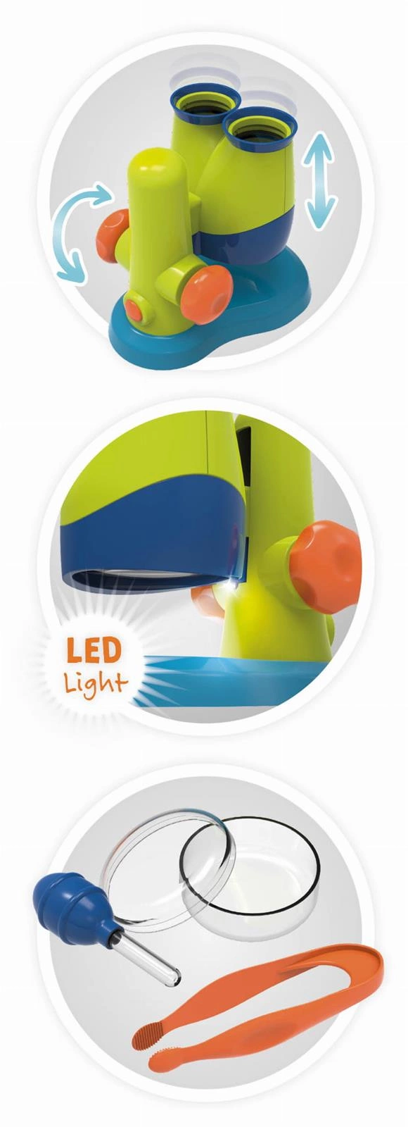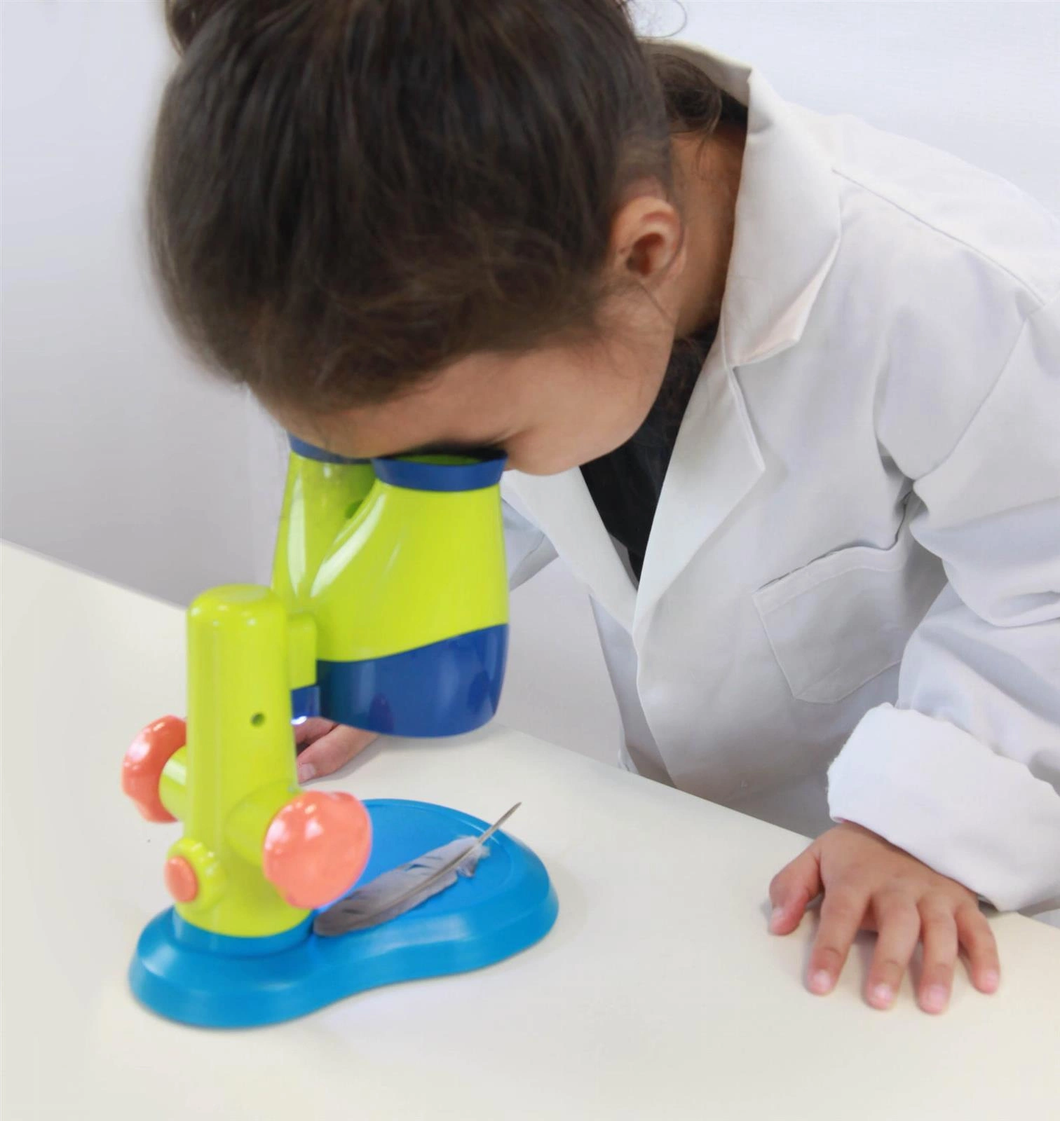 Odkryj mikroskopijny świat dzięki lornetkowemu mikroskopowi i przyjaznym dziecku akcesoriom.