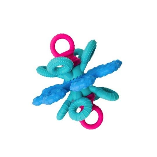 Ta wyjątkowa zabawka ma 18 elastycznych silikonowych ramion, które można ciągnąć, ściskać, skręcać i gryźć.