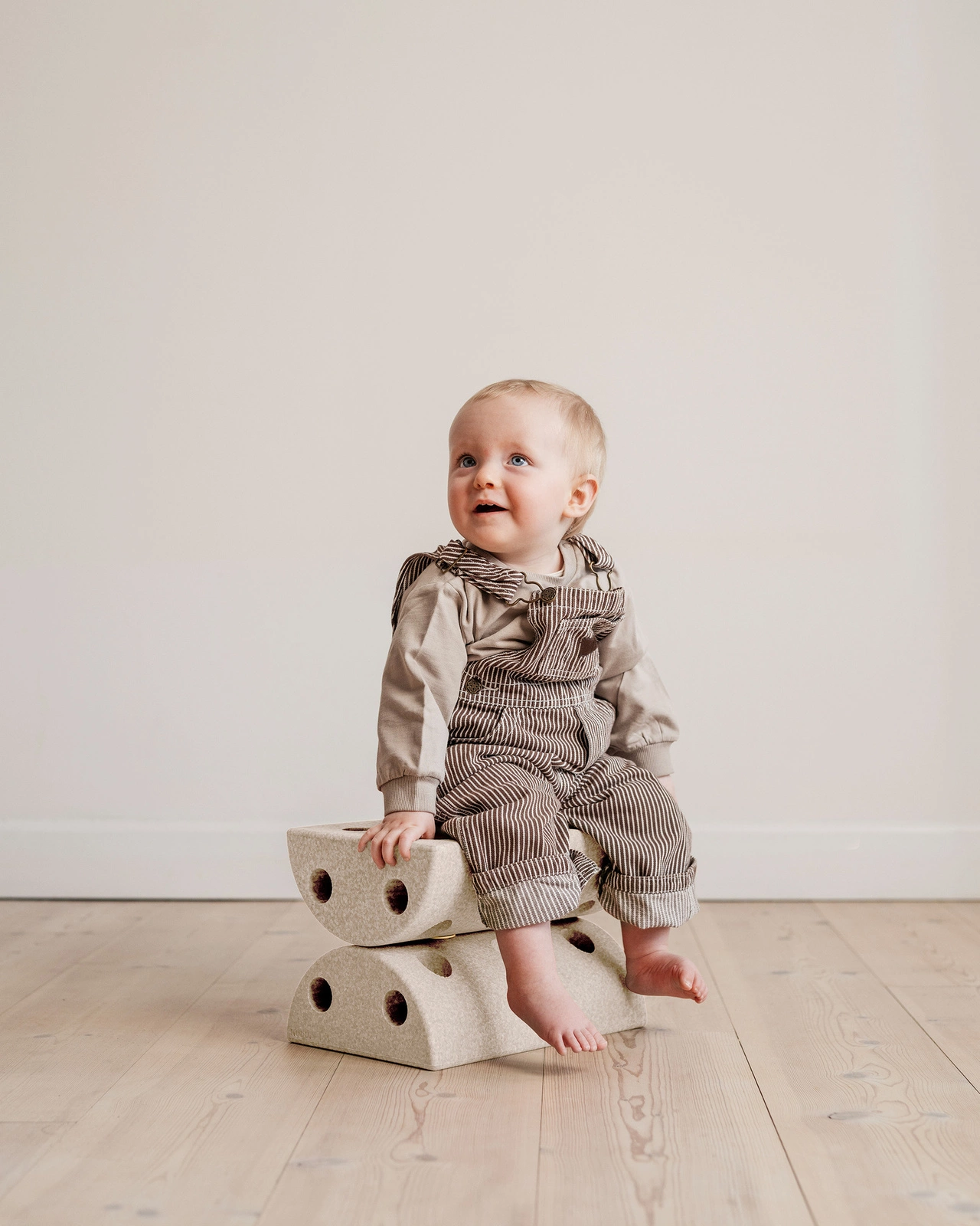 MODU – Kids Stool to wszechstronny stołek do zabawy i siedzenia, który wspiera rozwój ruchowy dziecka od pierwszych miesięcy życia. Może służyć jako wygodne siedzisko przy stoliku, pomoc przy zakładaniu butów w przedpokoju lub bujak i deska balansująca dla malucha. Dzięki lekkiej konstrukcji i piankowym blokom zestaw dostosowuje się do wieku i potrzeb dziecka – od zabawy na brzuszku po ćwiczenia równowagi i tory przeszkód. To funkcjonalny mebel i zabawka w jednym!