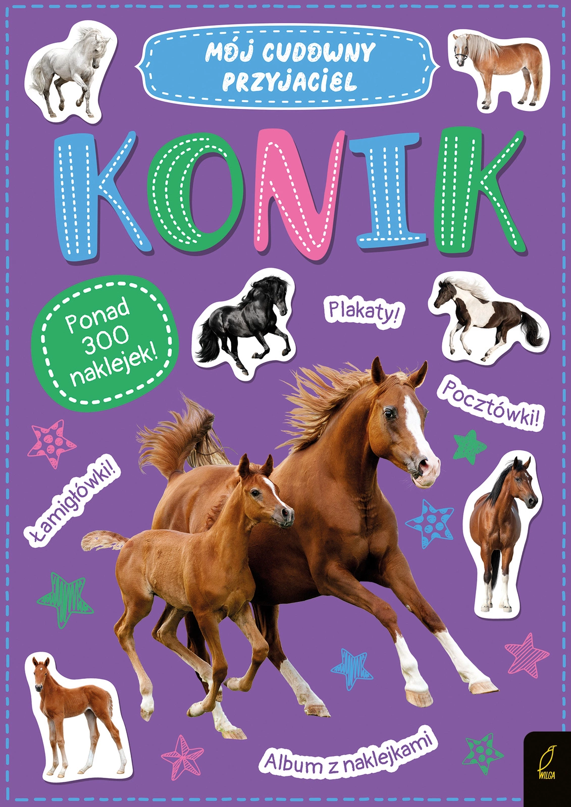 Mój cudowny przyjaciel. Konik Uwielbiasz zwierzaki? Marzysz o koniku? Sięgnij zatem po album Mój cudowny przyjaciel. Konik! W książce przeczytasz ciekawostki o końskich rasach, rozwiążesz łamigłówki, znajdziesz plakaty do wycięcia i zdjęcia uroczych koni. Dodatkowo w środku czeka na Ciebie ponad 300 naklejek!