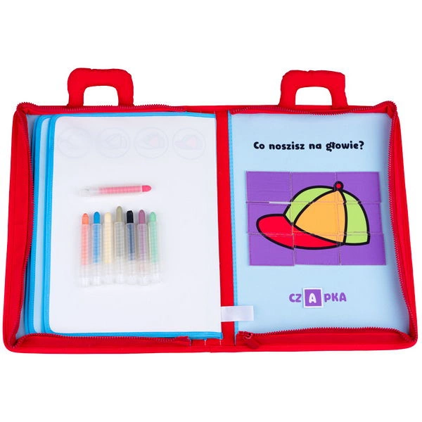 Pierwsza książeczka maluszka Mały Bystrzak od Jollybaby, która wspomoże maluszka podczas nauki malowania. Pozwoli krok po kroku wyjaśnić dziecku jak tworzyć wspaniałe rysunki. Dodatkowo wyposażona została w puzzle na rzep, które poniżej zostały podpisane. Do zestawu dołączone zostały magiczne gąbeczki oraz kredki, umożliwiające rysowanie po pustej stronie, a następnie jego zmazanie. Dobrej zabawie nie będzie końca! Książka posiada zapięcie na zamek błyskawiczny oraz wygodny uchwyt do przenoszenia.