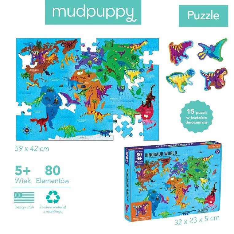Mudpuppy Puzzle Świat dinozaurów z elementami w kształcie dinozaurów 80 elementów 5+