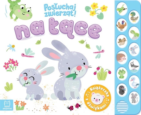 Miłą niespodzianką są dołączone dźwięki zwierząt z łąki. Można posłuchać, jakie odgłosy wydają: pasikonik, kaczka, bażant, jaszczurka, przepiórki, zające, jeż, czajka, żaby, bocian, kret, myszy. Naciśnij przycisk z obrazkiem, aby włączyć dźwięk. Chcesz wyłączyć? Naciśnij przycisk jeszcze raz. Zabawa z książką rozwija zmysły malucha. Wesołe i łatwe do zapamiętania wierszyki rozwijają pamięć i percepcję dziecka, które wzbogaca również swoją wiedzę o odgłosy wydawane przez zwierzęta z łąki.
