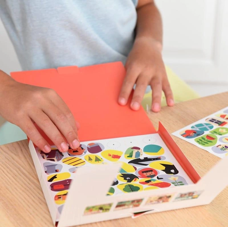 - 6 kart 18x18 cm do uzupełnienia naklejkami,