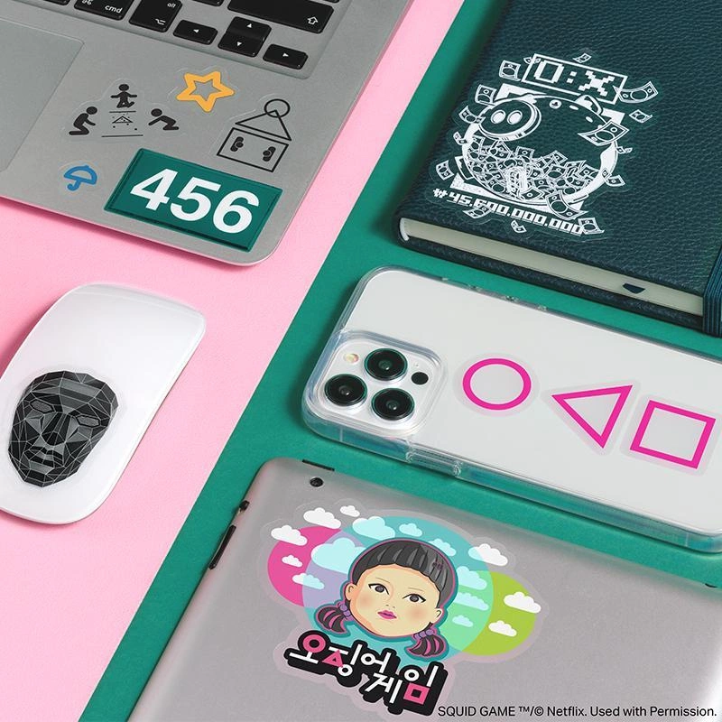 Odmień swój telefon, laptop i gadżety dzięki przyciągającym wzrok naklejkom z serialu Squid Game.