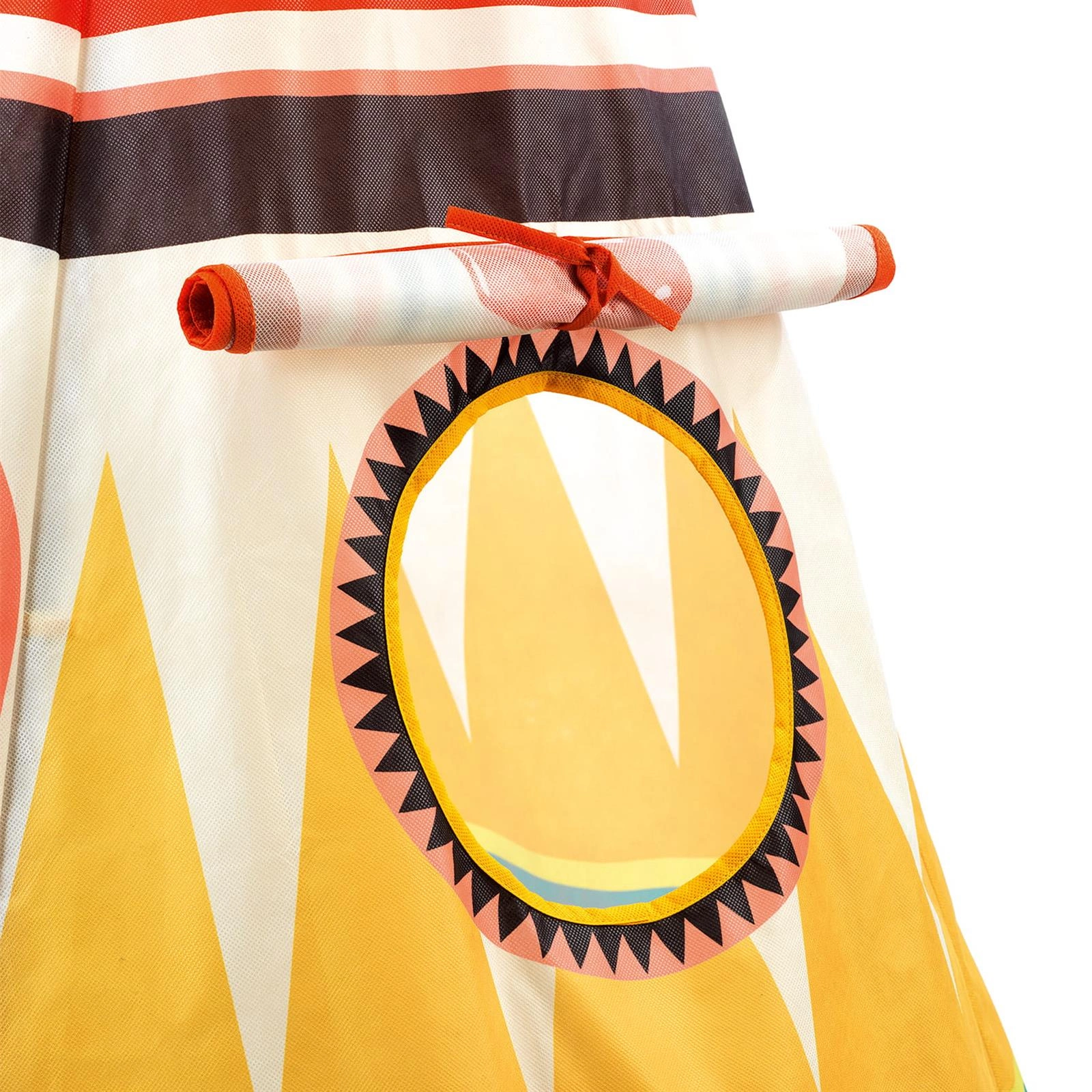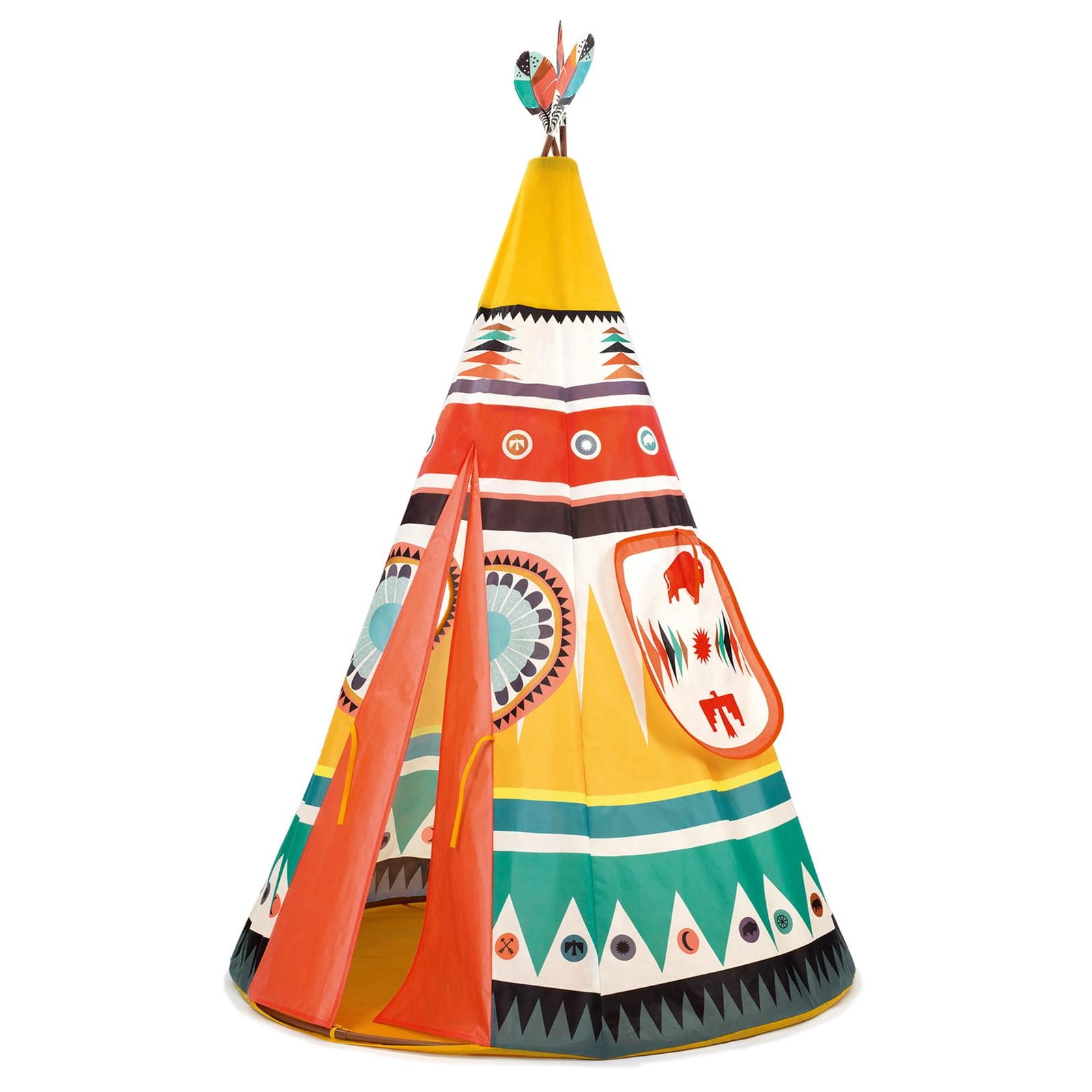 Fantastyczny, kolorowy TIPI z  firmy Djeco. Wspaniała zabawa  w dziecięcym pokoju. Od frontu tipi ma /zwijane drzwi, a po bokach okrągłe okienka. Namiot stwarza nieograniczone możliwości do zabawy.
