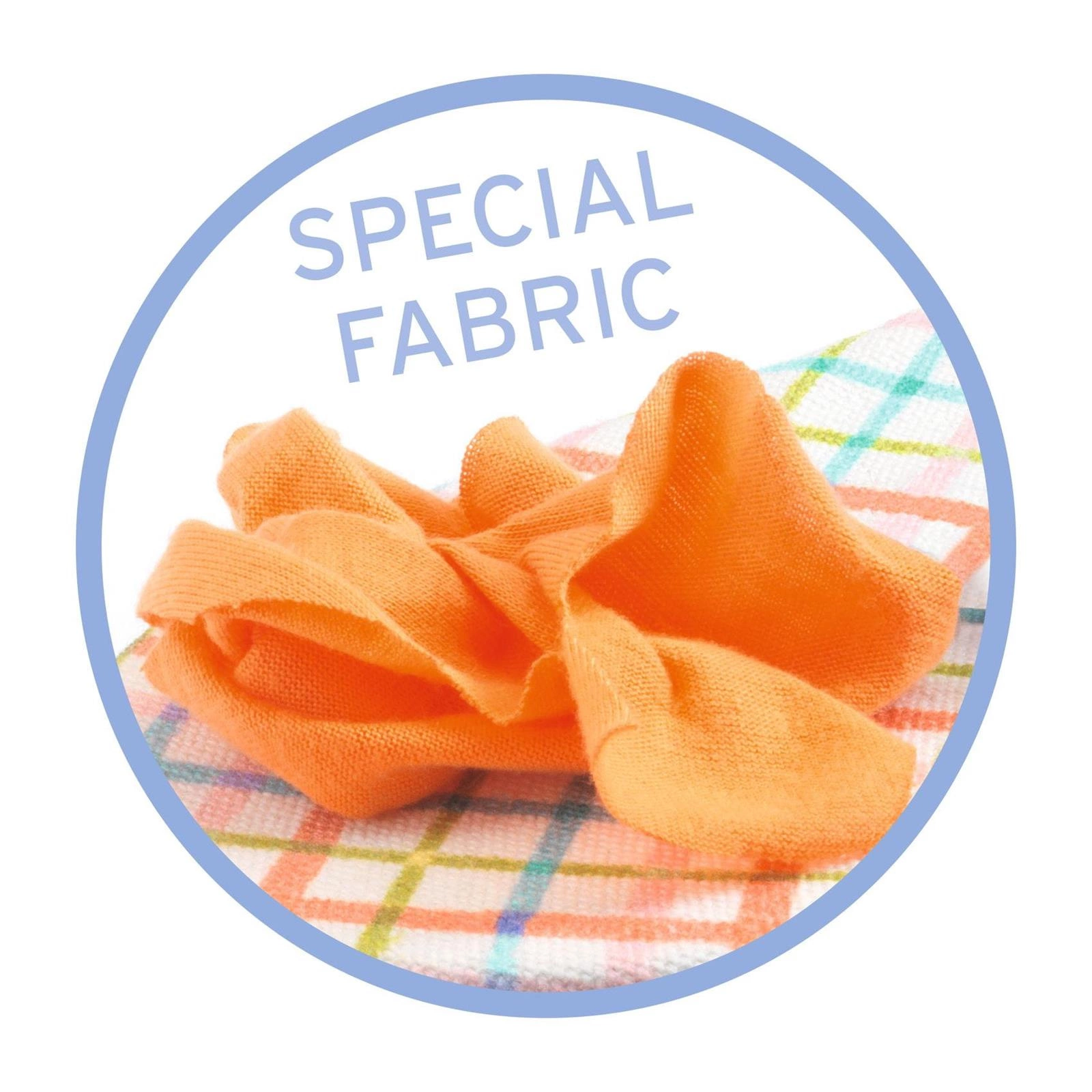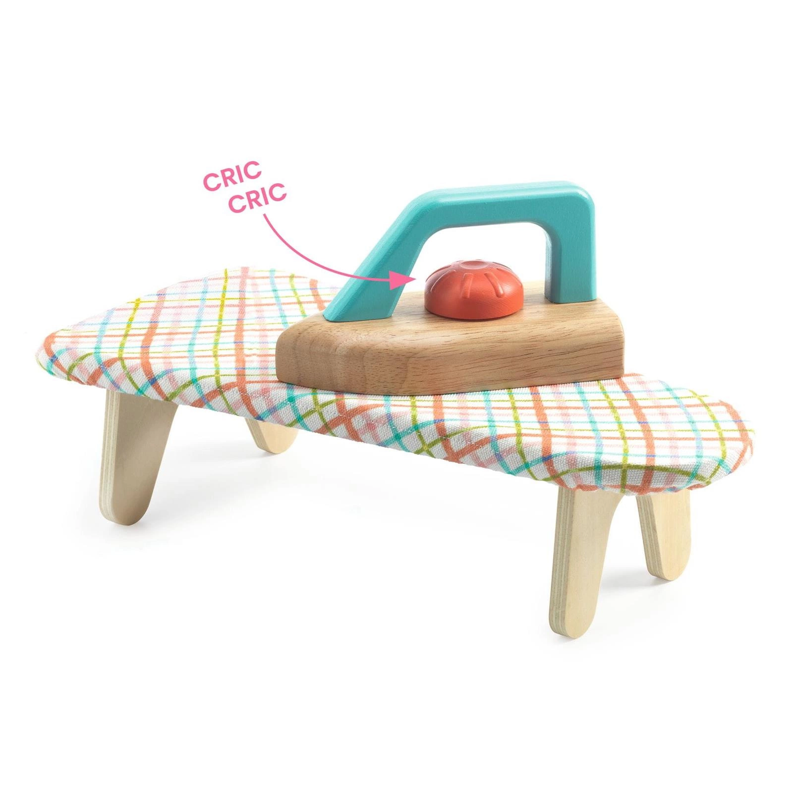 Zestaw do odgrywania ról zawiera drewniane żelazko (na którym można "ustawić" pokrętłem odpowiednią temperaturę), deskę do prasowania, 4 sztuki ubrań i obrus. Materiał z którego zostały zrobione ubrania to specjalna tkanina, która rzeczywiście prostuje się pod naciskiem żelazka. Magiczny efekt: wszystkie zagięcia znikają. Po zakończonym zadaniu można pognieść ubrania ponownie i zacząć zabawę od nowa.