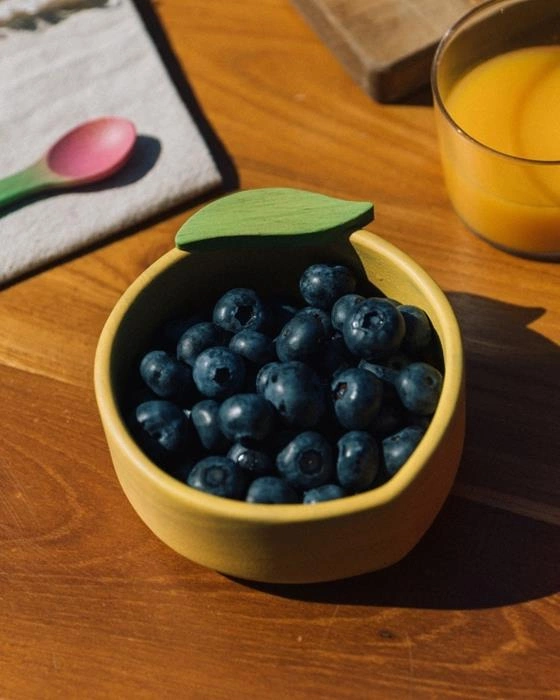 Bezpieczny od pierwszego kęsa – zestaw obiadowy dla niemowląt bez plastiku! Miseczka z łyżeczką Cytryna Lou to mega-uroczy zestaw naczyń dla dzieci, który skradnie serca maluchów i ich rodziców. Wykonany ręcznie z drewna kauczukowca Hevea, daje drugie życie drzewom, które wcześniej podarowały nam kauczuk do produkcji gryzaków Oli & Carol.