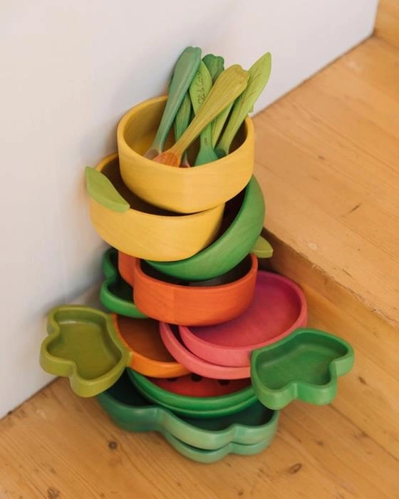Drewniana miseczka i łyżeczka dla dziecka stworzone zostały w ponadczasowym stylu. Rosną razem z maluchem – od pierwszych posiłków niemowlaka po przekąski starszaka. Mogą być wykorzystywany także jako urocze naczynia do serwowania na „dorosłych” stołach.