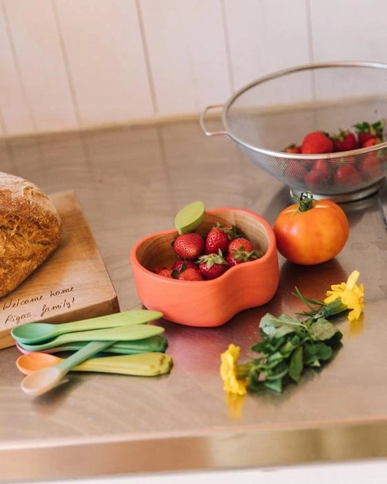Bezpieczny od pierwszego kęsa – zestaw obiadowy dla niemowląt bez plastiku! Miseczka z łyżeczką Jabłko Pepa to mega-uroczy zestaw naczyń dla dzieci, który skradnie serca maluchów i ich rodziców. Wykonany ręcznie z drewna kauczukowca Hevea, daje drugie życie drzewom, które wcześniej podarowały nam kauczuk do produkcji gryzaków Oli & Carol.