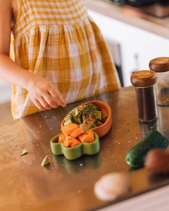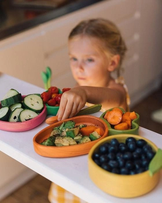 Bezpieczny od pierwszego kęsa – zestaw obiadowy dla niemowląt bez plastiku! Talerzyk dzielony z łyżeczką Marchewka Cathy to mega-uroczy zestaw naczyń dla dzieci, który skradnie serca maluchów i ich rodziców. Wykonany ręcznie z drewna kauczukowca Hevea, daje drugie życie drzewom, które wcześniej podarowały nam kauczuk do produkcji gryzaków Oli & Carol.