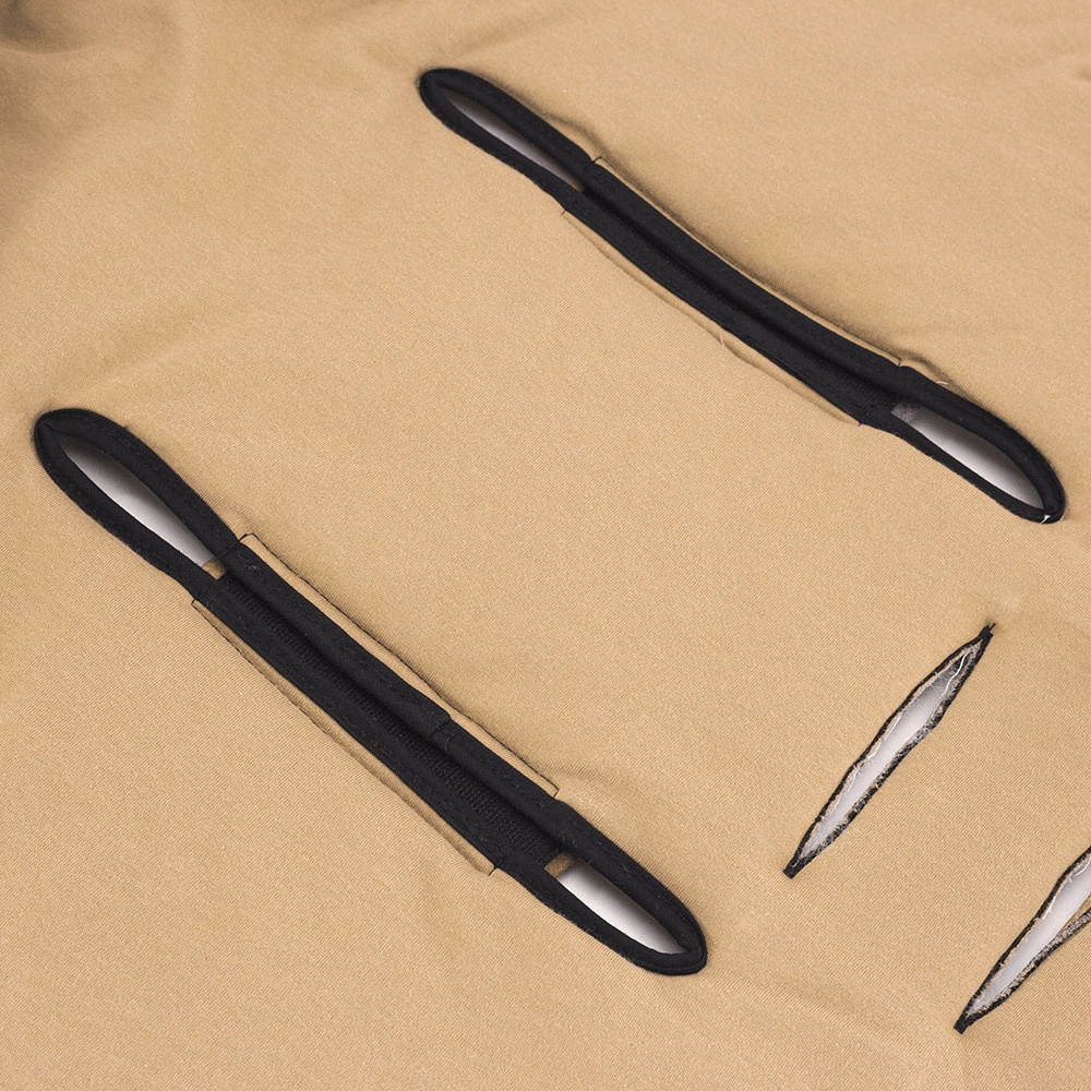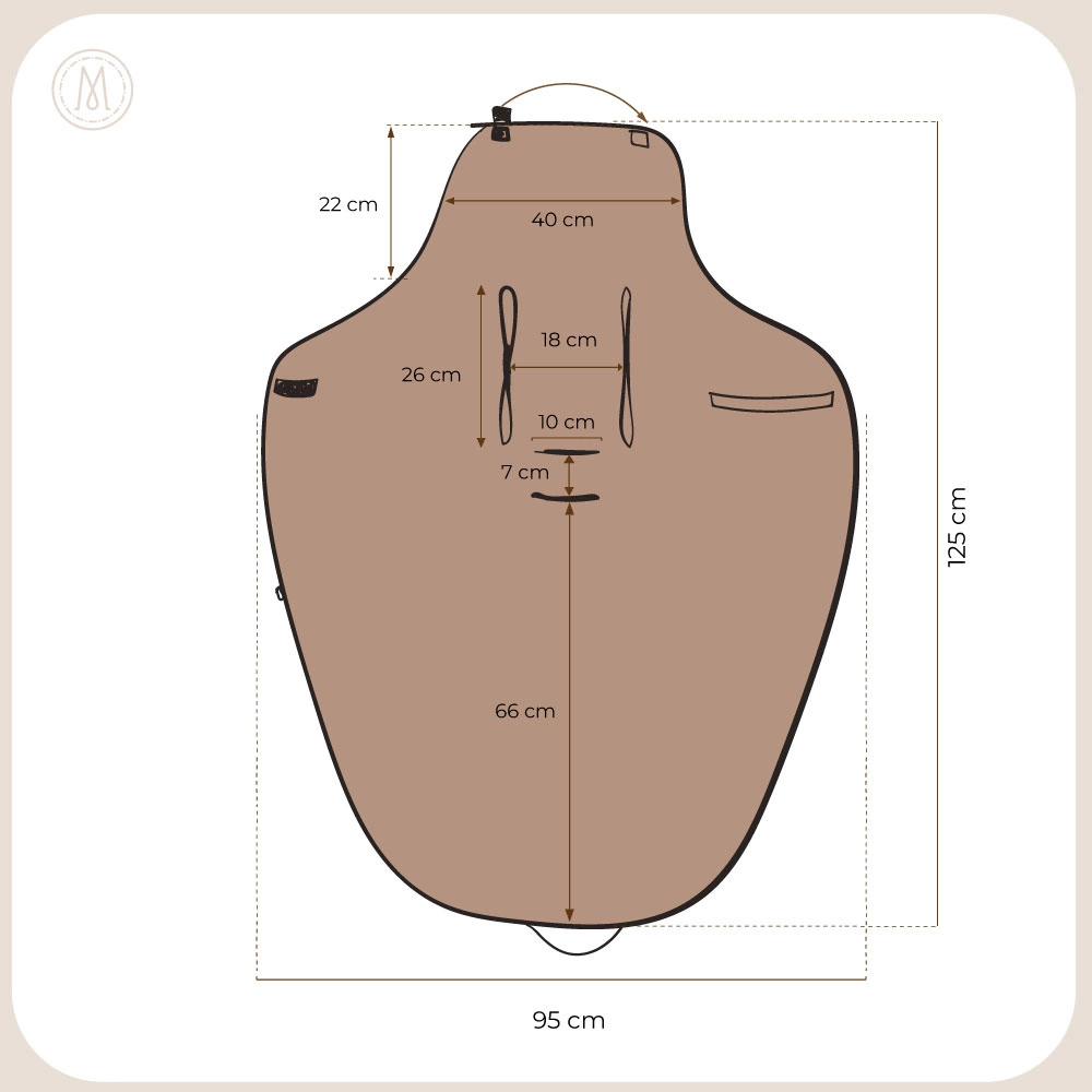Otulacz do fotelika wyposażony jest w otwory na trzy i pięciopunktowe pasy bezpieczeństwa. Długie pionowe otwory zabezpieczone rzepem pomogą dopasować kocyk do każdego fotelika. Zapinany jest na szeroki rzep z dużym obszarem regulacji, a w górnej części posiada zapinany kapturek, który otula i chroni główkę.