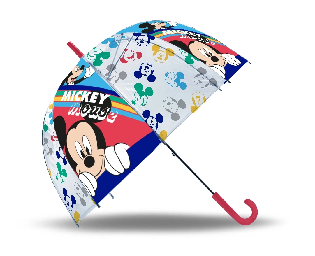 Parasolka Myszka Miki, automatyczna, przezroczysta zapewni doskonałą ochronę dziecko zarówno przed deszczem jak i słońcem.
