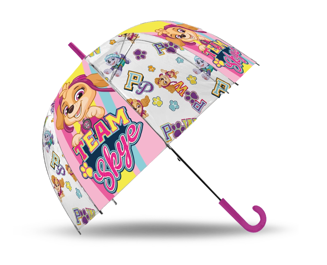 Parasolka Psi Patrol, automatyczna, przezroczysta, zapewni doskonałą ochronę dziecko zarówno przed deszczem jak i słońcem.