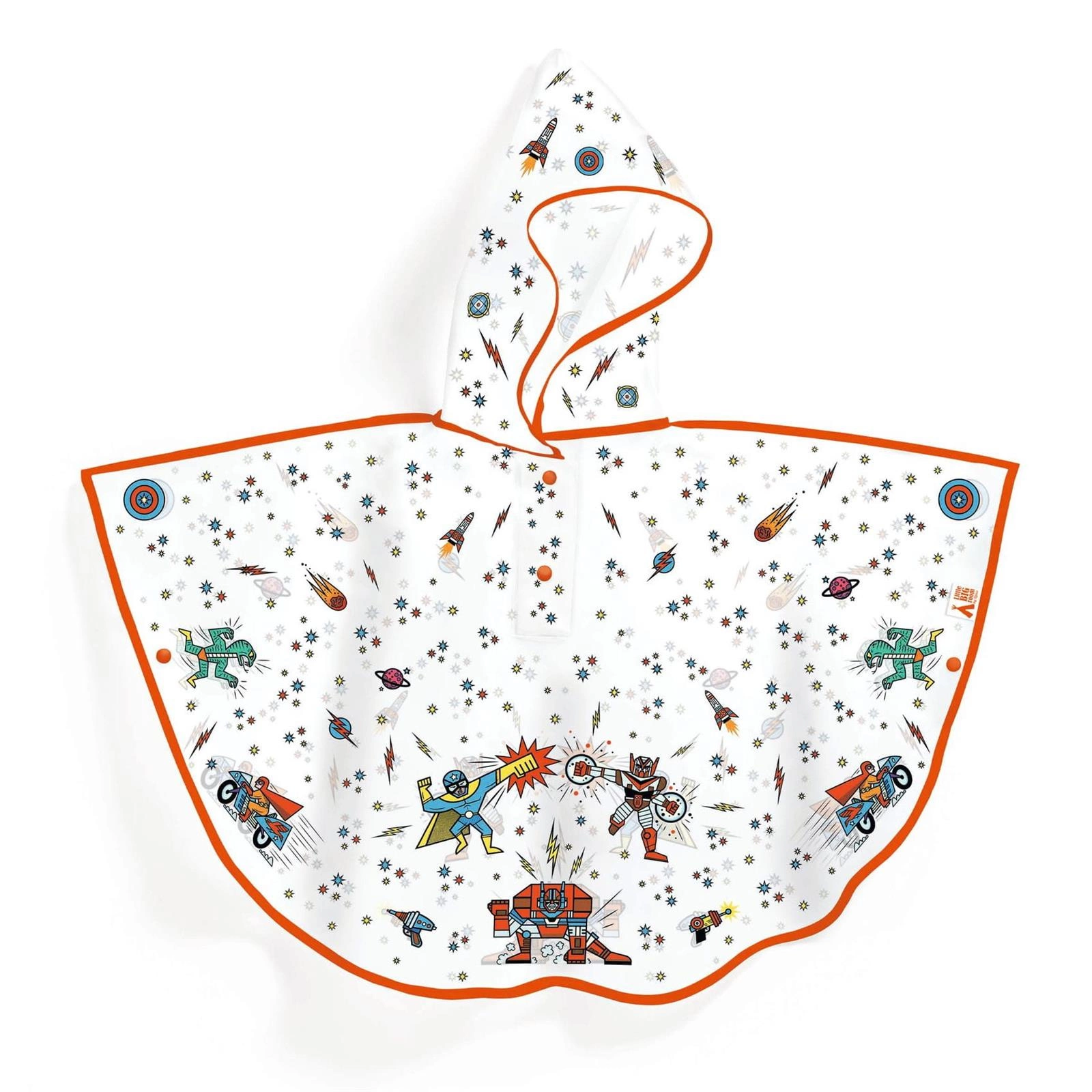 My się deszczu nie boimy! Pelerynka przeciwdeszczowa francuskiej firmy Djeco uratuje każde wyjście w razie niepogody. Wykonana z miękkiego, nieprzemakalnego materiału, zapewniającego swobodę ruchów. Zdobiona kolorowymi grafikami, które rozjaśnią nawet najbardziej pochmurny dzień. Posiada kaptur oraz praktyczne zatrzaski pod ramionami i pod szyją, zapewniające dodatkowy komfort noszenia. Przeznaczona dla dzieci w wieku 5-7 lat o wzroście 110-122 cm.