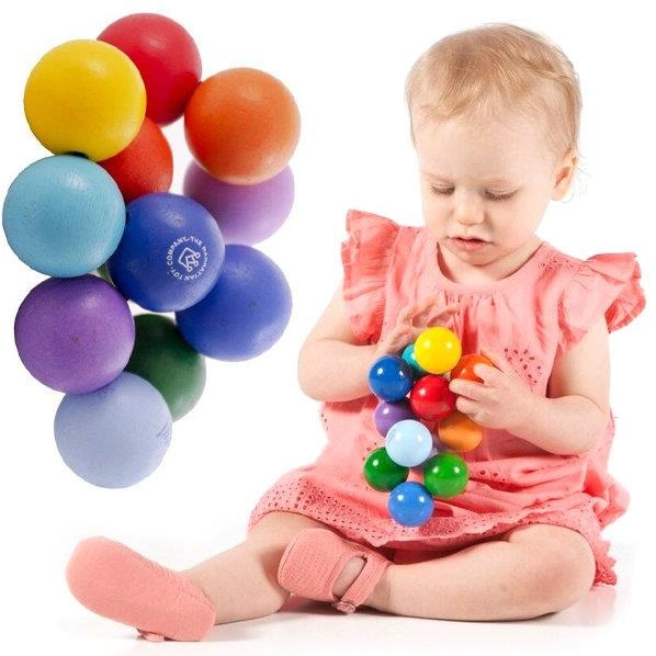 Perełki niemowlęce to wykonana z wysokiej jakości drewna oraz nietoksycznych farb (wykonanych na bazie wody) zabawka rozwojowa.