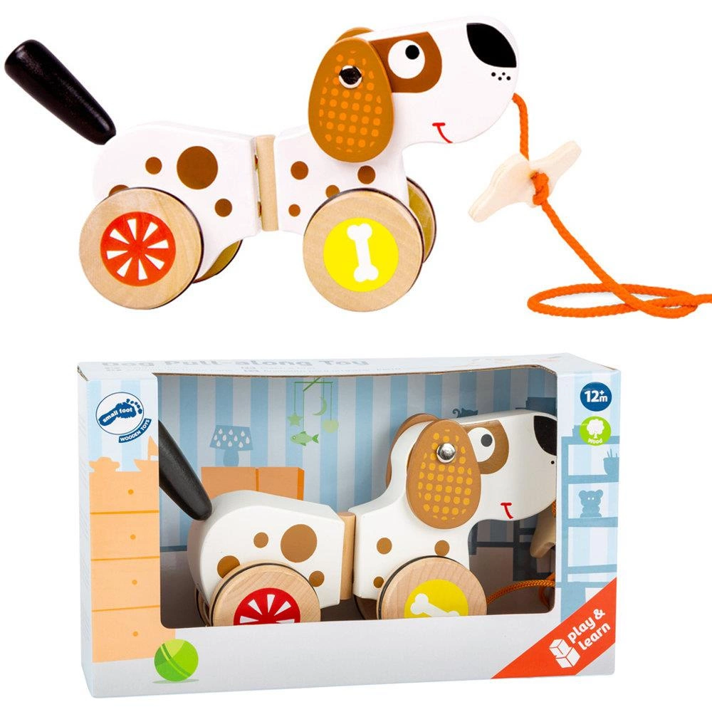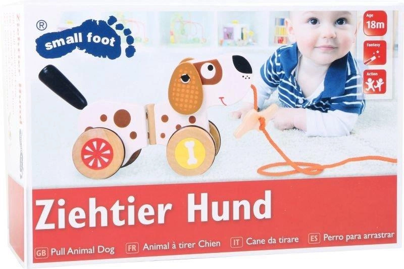 Piesek Groszek - zabawka drewniana do ciągnięcia, 10043-Small Foot, zabawki na sznurku