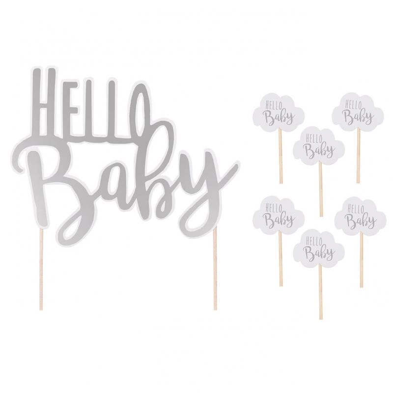 Uroczy zestaw do dekoracji ciasta i babeczek - idealne na baby shower i przyjęcia urodzinowe. W srebrno-białej kolorystyce wyśmienicie prezentują się na stole. W zestawie napis Hello Baby i dziesięć pikier z tym samym napisem. Wymiary: 18 x 0,5 x 26 cm Jabadabado to szwedzka firma istniejąca na rynku od 1993 roku specjalizująca się w projektowaniu i produkcji zabawek drewnianych, elementów wyposażenia pokoi dziecięcych. Wszystkie produkty Jabadabado cechuje oryginalny design, piękna kolorystyka i niezwykle staranne wykonanie. Wszystkie zabawki marki Jabadabado stworzone są z myślą o dzieciach i pobudzają do kreatywnej zabawy.
