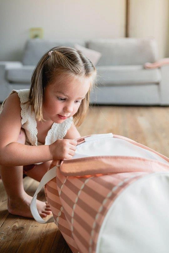 Nie musisz już wybierać między funkcjonalnością a estetyką. Produkty z serii SOO Play&Go to połączenie maty do zabawy i pojemnika na zabawki w jednej, przemyślanej konstrukcji. Zintegrowany design bez luźnych elementów. Mata na zabawki i pokrywa zszyte są z otworem kosza - dzięki czemu nie ma ryzyka, że coś się zgubi. Całość jest lekka, trwała i łatwa w przenoszeniu po domu.