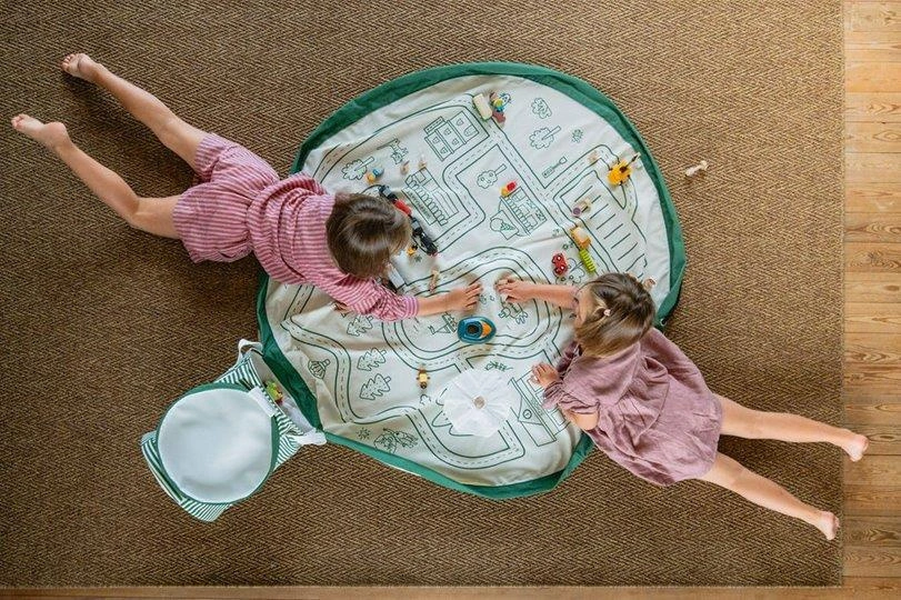 Rozłóż matę do zabawy dla dzieci z magicznym nadrukiem drogowego świata, a kiedy nadejdzie czas porządków - pociągnij za sznurki i w kilka chwil zamień ją w zamykany kosz na zabawki. Proste? Tak. Piękne? Zdecydowanie. Marka Play&Go od lat tworzy inteligentne rozwiązania dla rodziców, którzy chcą połączyć zabawę z nauką porządku. Model SOO inspiruje dzieci do odkrywania, a rodzicom ułatwia codzienne życie.