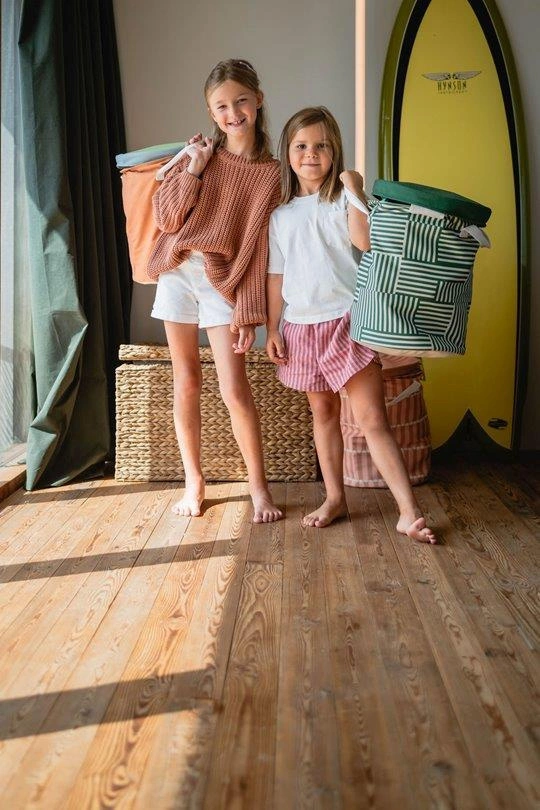 Nie musisz już wybierać między funkcjonalnością a estetyką. Produkty z serii SOO Play&Go to połączenie maty do zabawy i pojemnika na zabawki w jednej, przemyślanej konstrukcji. Zintegrowany design bez luźnych elementów. Mata na zabawki i pokrywa zszyte są z otworem kosza - dzięki czemu nie ma ryzyka, że coś się zgubi. Całość jest lekka, trwała i łatwa w przenoszeniu po domu.