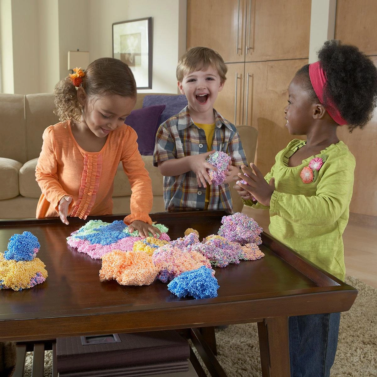 - Opakowanie zawiera kolorową mieszankę PlayFoam z delikatnym brokatem, którą dzieci mogą kształtować i zmieniać, a kiedy skończą, mogą po prostu użyć plastikowych form do pakowania, aby przywrócić oryginalne wzory.
