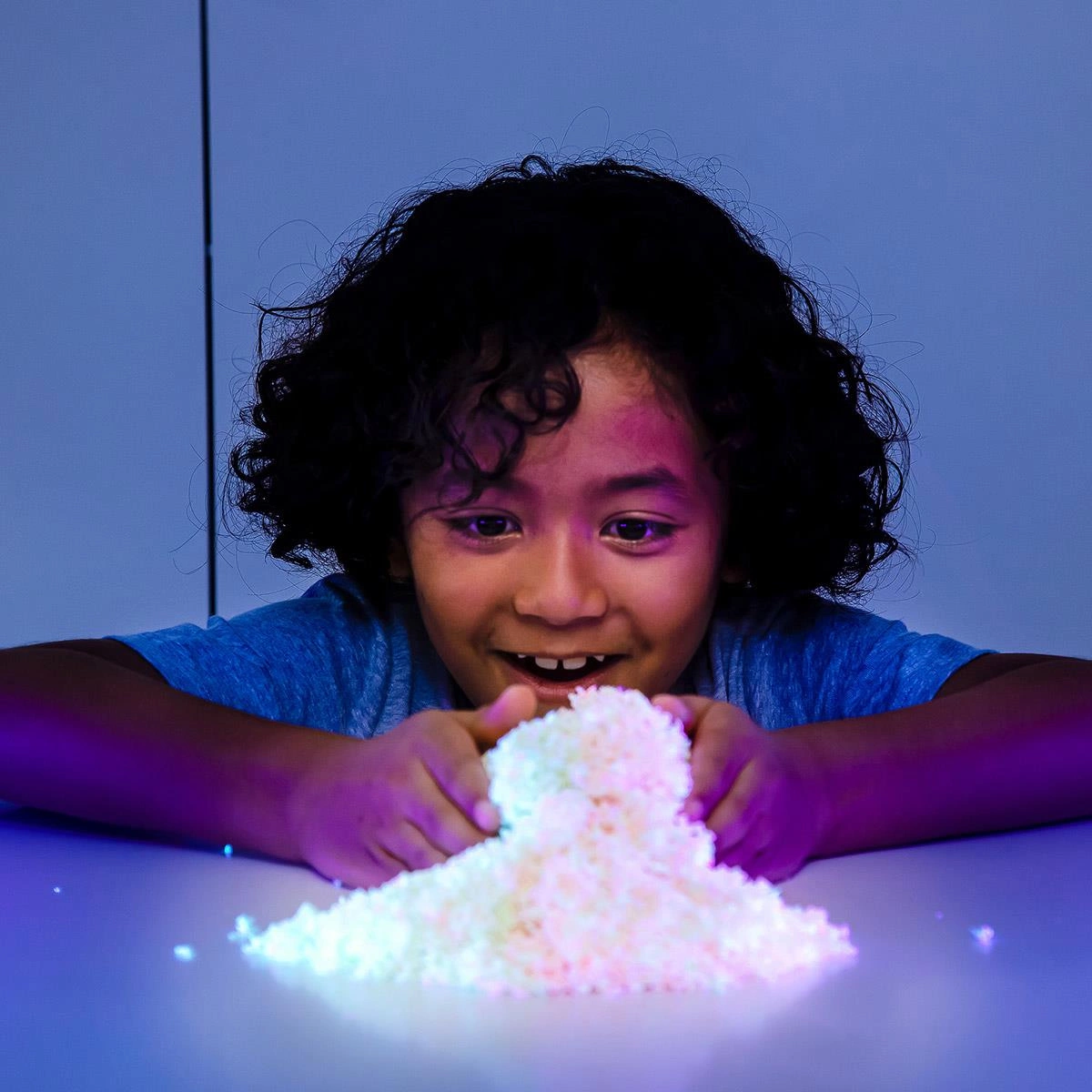 - Nietoksyczny materiał do rzeźbienia na bazie piankowych płatków świecących w ciemności ( po wcześniejszej ekspozycji na światło słoneczne lub sztuczne).