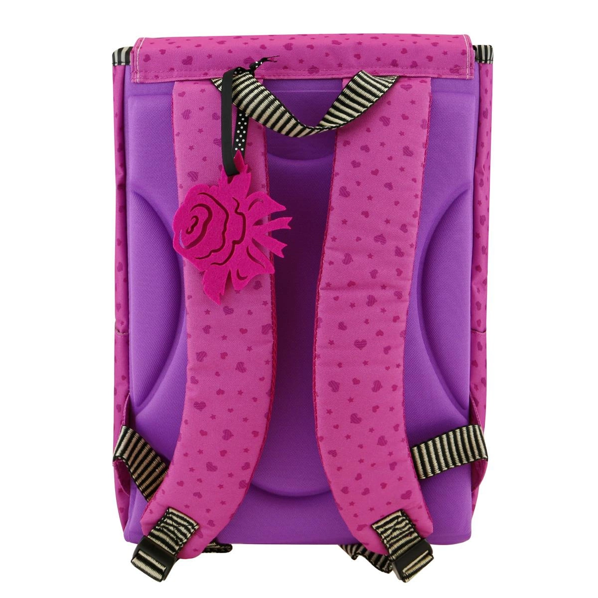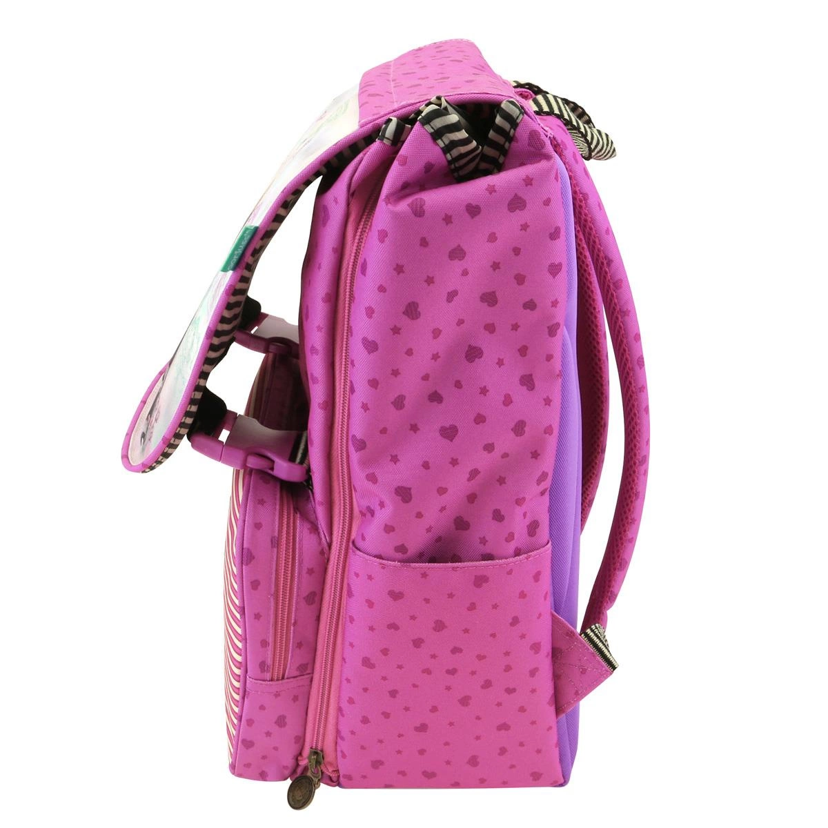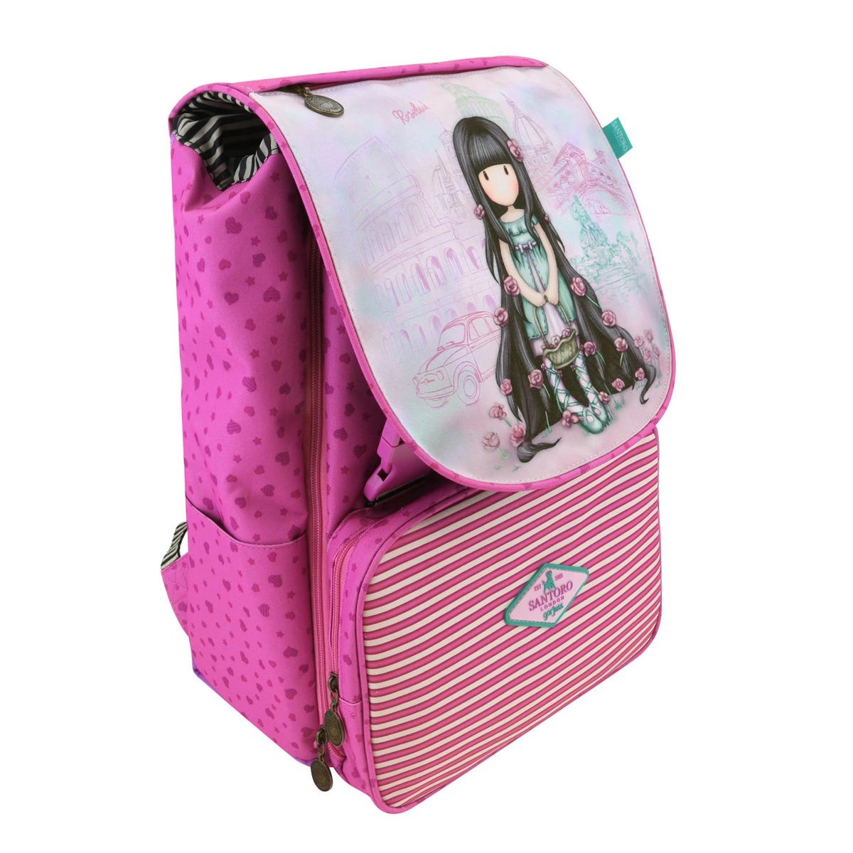 - Wyjątkowo praktyczny i duży plecak z wizerunkiem dziewczynki Gorjuss w delikatnych odcieniach pączków róży.