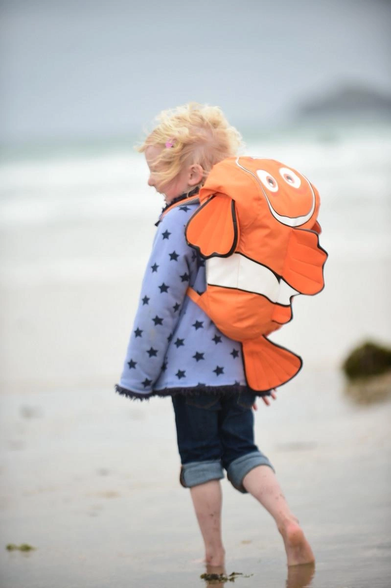 Wykonana z wytrzymałej, odpornej tkaniny rybka Nemo z filmu "Gdzie jest Nemo" ma dużej wielkości 10 litrowy brzuszek, który pomieści wszystkie niezbędne rzeczy potrzebne małemu poszukiwaczowi przygód.