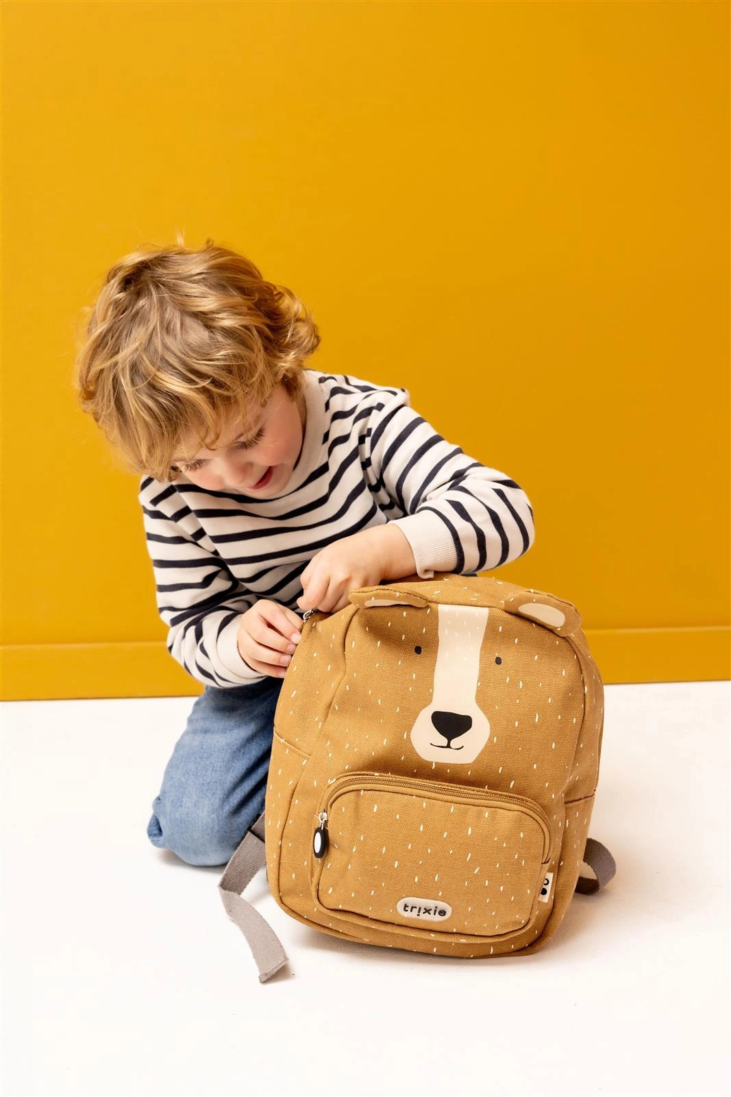 Wyjątkowy plecak z radosnym zwierzakiem, bardzo lekki i pojemny, stworzony z myślą o wygodzie i praktyczności dla przedszkolaków i uczniów. Charakteryzuje się wyjątkowym designem i niezwykłą paletą kolorów. Dzięki niemu dziecko jest gotowe na wszelkie wyzwania. Atrybuty: zaprojektowany specjalnie dla dzieci, z uwzględnieniem ich potrzeb i wygody wykonany z wysokojakościowej bawełny ergonomiczne szelki oraz regulowany pas piersiowy dla większego komfortu noszenia duża komora przednia i mała kieszeń otwieranie i zamykanie na zamki błyskawiczne możliwość personalizacji plecaka poprzez dodanie imienia dziecka lub opiekuna wewnątrz wodoodporny Materiał: 60% bawełna z recyklingu, 35% bawełna, 5% wiskoza podszewka: 85% PES z recyklingu, 15% bawełna wodoodporna powłoka akrylowa Pojemność: 7,5l Zalecany wiek: 3 lata+ Wymiary: 31 x 23 x 10 cm Producent: Trixie Baby