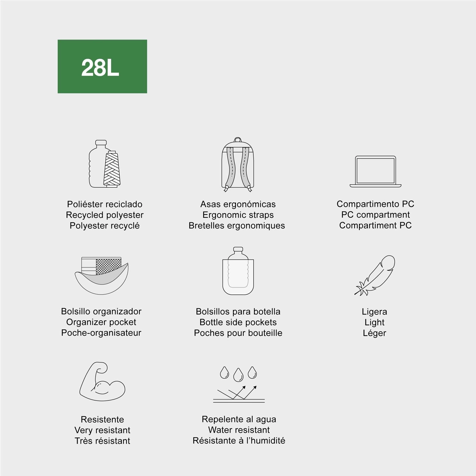 • materiał: poliester z RPET (poliester z recyklingu), podszewka poliester;