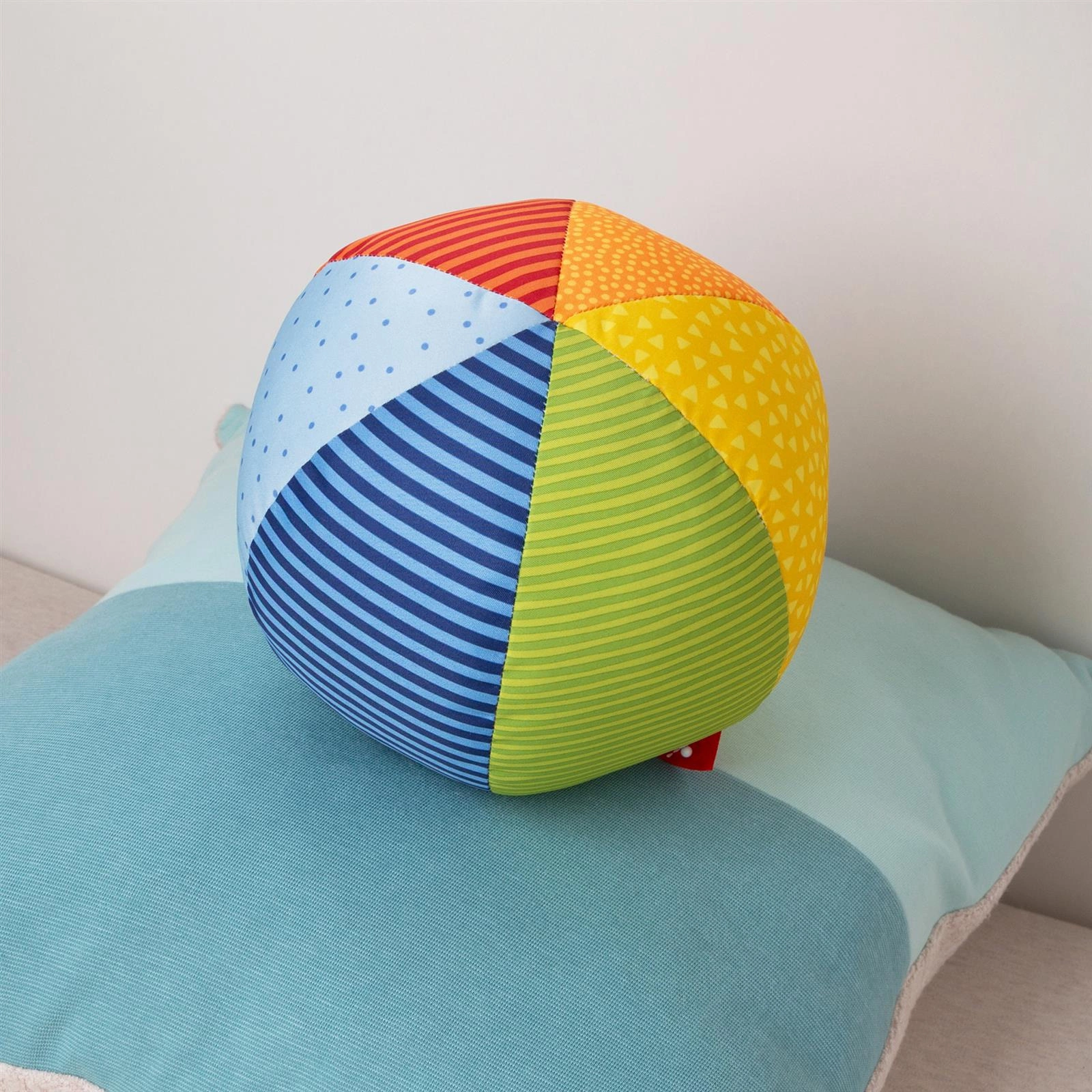 Wyjątkowo miękka pluszowa piłka jest wszechstronną zabawką, która wspiera prawidłowy rozwój motoryczny i sensoryczny maluszka. Wbudowana grzechotka ćwiczy słuch i nagradza próby chwytania. Kolory dbają o prawidłowy rozwój zmysłu wzroku, a różnorodne tkaniny i wzory zapraszają do eksplorowania zabawki z każdej strony.