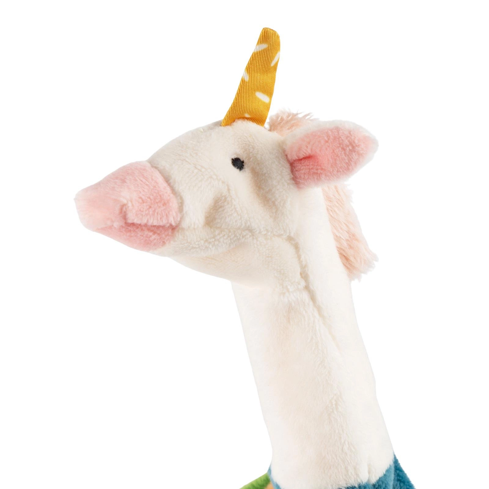 Kolorowa pluszowa rękawiczka z pacynkami jest wszechstronną zabawką, która przyciąga uwagę i pobudza wyobraźnię maluszka. Pacynki mają haftowane buźki i odegrają każdą rolę w domowym teatrzyku.