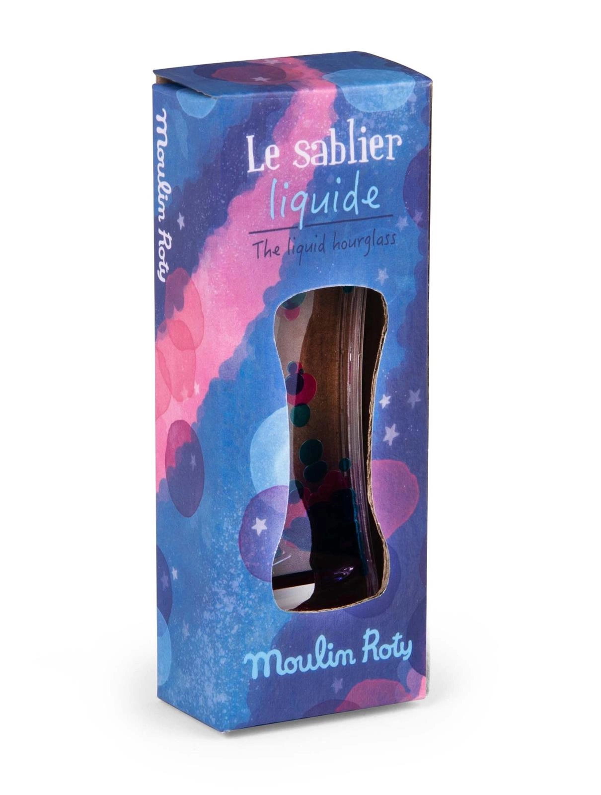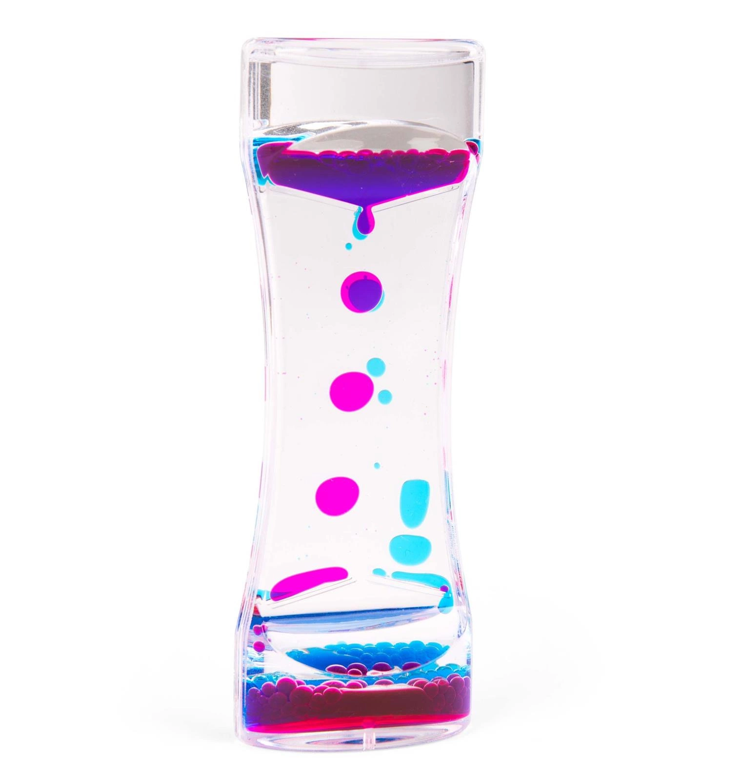 Magiczna klepsydra, w której zamiast piasku, można obserwować różowy i niebieski płyn, delikatnie przelewający się z góry na dół. Rozmiar został dopasowany do małych rączek dziecka, które samodzielnie może odwracać klepsydrę do góry nogami. Świetne zajęcie relaksacyjne, rozwijające cierpliwość i umiejętność skupienia się.