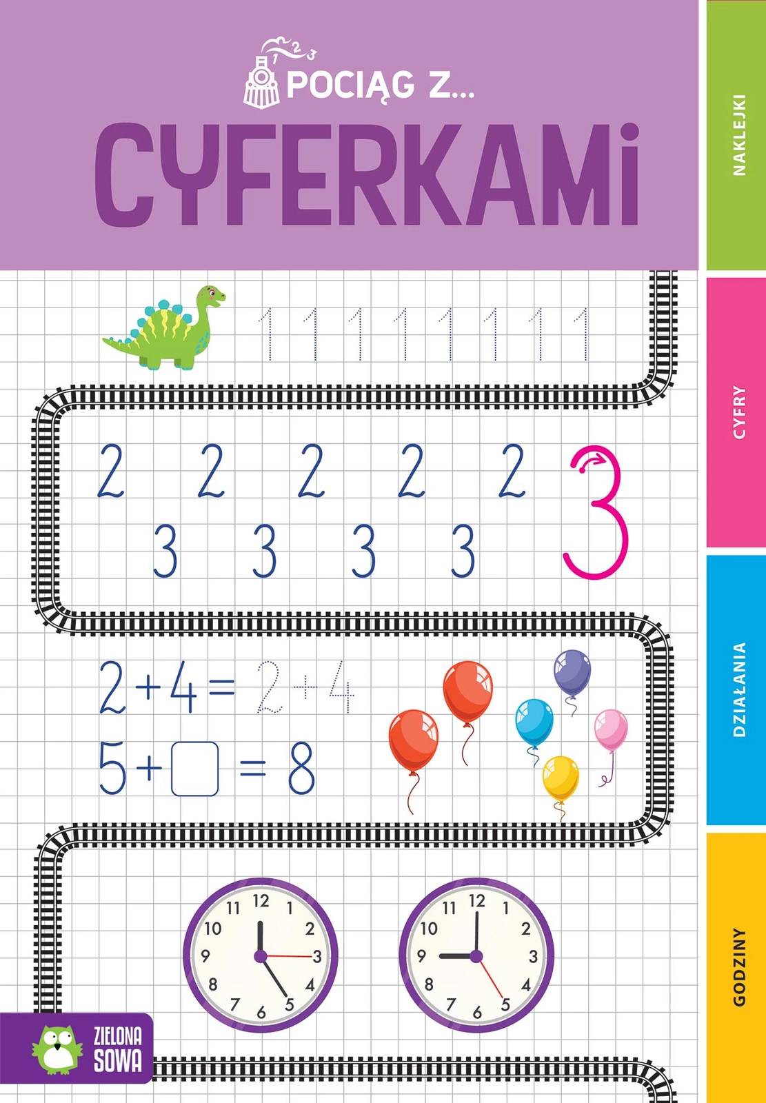„Pociąg z cyferkami” to zeszyt ćwiczeń, która odkryje przed dzieckiem świat cyfr: pomoże w nauce poprawnego zapisu cyfr, liczenia elementów w zbiorach oraz zapozna z prostymi działaniami matematycznymi. Przy okazji zapewni też świetną zabawę: zawiera wiele kreatywnych zadań rozbudzających ciekawość oraz obrazki do pokolorowania i naklejki. Dzięki temu nauka stanie się przyjemnością!