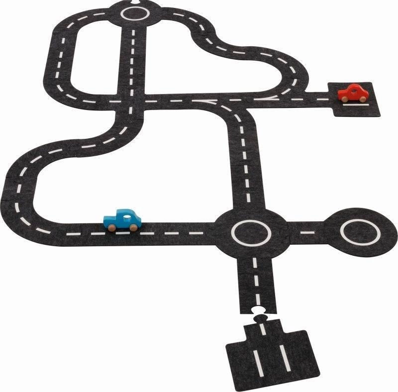 Kreatywny zestaw do zabawy dla najmłodszych Goki z pewnością sprawi wiele frajdy miłośnikom motoryzacji. Zabawa rozwija zdolności ruchowe, wyobraźnię, uczy logicznego myślenia. Tor wykonany jest z przyjemnego materiału i jest łatwy do rozłożenia, a także szybko i bez większych trudności można go schować po skończonej zabawie. Kolorystyka i układ toru sprawiają , że zabawa staje się bardzo realistyczna. Najmłodszy uczestnik ruchu drogowego może poprzez zabawę uczyć się zasad obowiązujących na drodze. Dodatkowym atutem toru jest możliwość zabawy z przyjaciółmi. W skład zestawu wchodzi materiałowa droga oraz dwa drewniane samochodziki.