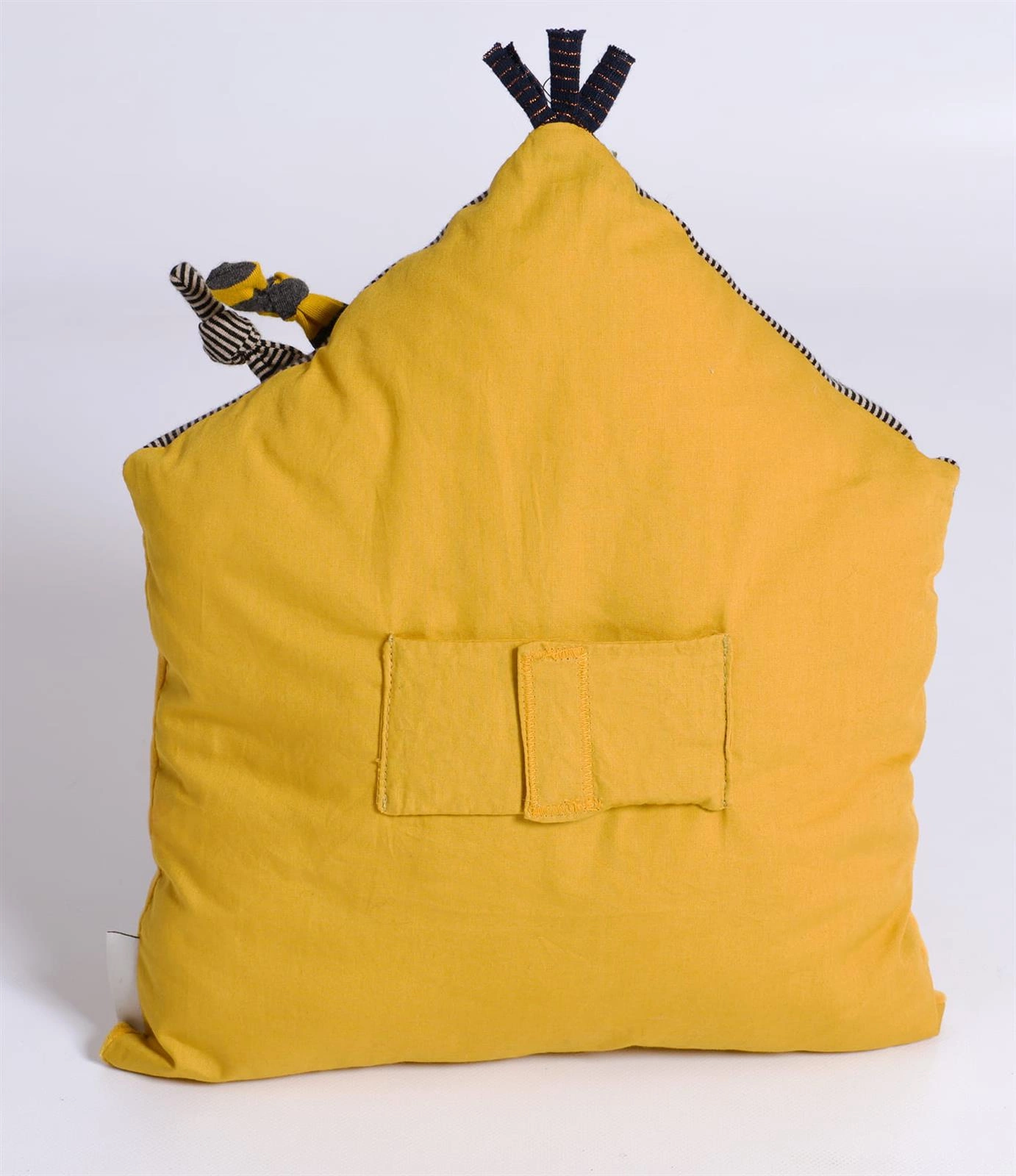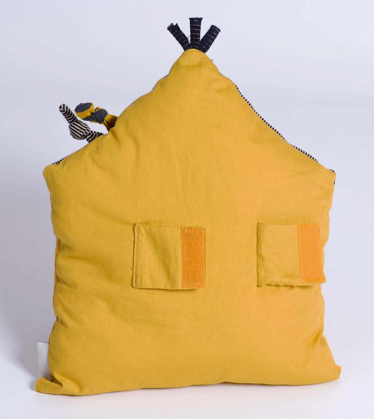 Piękna poduszka przedstawia żółty domek z niespodziankami dla Twojego dziecka! Maluszek odsłania kurtynę z chrupiącym papierem, aby odkryć kota Fernanda! Otwiera się okno, aby odsłonić lustro. Jest też dzwonek do rozwijania zdolności słyszenia. Ta poduszka ma małe elementy do złapania lub przeżuwania. Pozwoli to Twojemu dziecku rozwinąć swój słuch i pobudzić jego wzrok oraz dotyk. Z tyłu jest zapięcie na rzep, aby łatwo przymocować zabawkę do łóżeczka. Ta zabawka aktywności będzie towarzyszyć dziecku podczas codziennych zabaw. Idealny prezent dla noworodka.