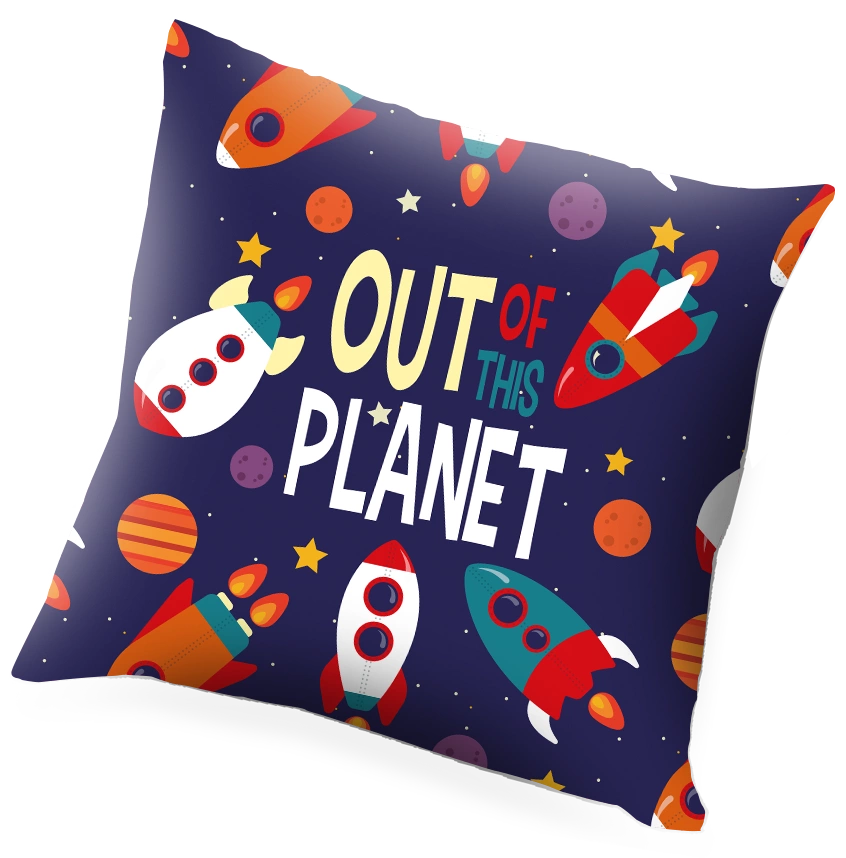 Poduszka z motywem Out of Planet jest delikatna i miła w dotyku.