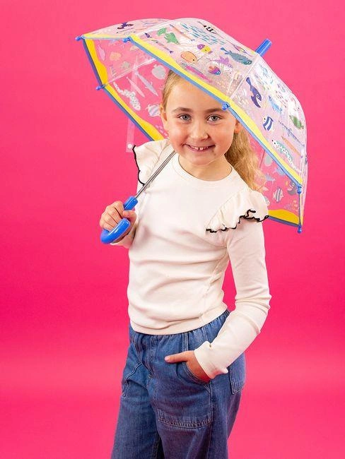 Zapewnij swojemu dziecku niezapomniane przygody podczas spacerów w deszczu dzięki magicznej parasolce zmieniającej kolory! Za każdym razem, gdy deszcz zaczyna padać, białe kształty na parasolce magicznie wypełniają się kolorowymi motywami podwodnego świata, rozweselając nawet najbardziej pochmurny dzień. Gdy parasolka wysycha, kolory wracają do bieli. W komplecie znajduje się wygodne zapięcie na rzep, które zabezpiecza złożoną parasolkę.